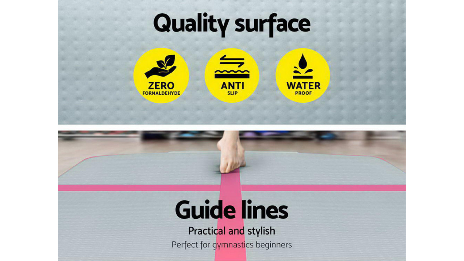 Designed as the ultimate training and competition landing platform, the TSB Living Inflatable Gymnastics Air Track 5 x 1m is a game-changer for gymnastics, cheerleading, martial arts, and school sports. Crafted from durable 1000-denier double-wall PVC fabric, this product features an anti-slip and wear-resistant surface that significantly reduces impact. With a thickness of 20 cm, it offers superior bounce and exceptional versatility.