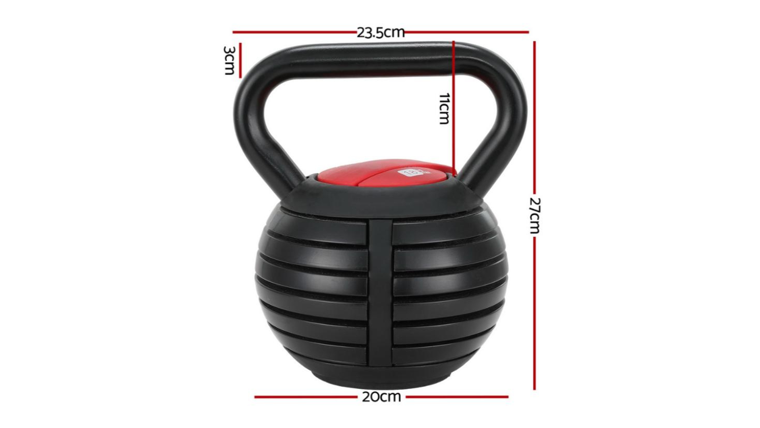 Elevate your fitness routine with the Everfit Adjustable Cast Iron Kettlebell with Neoprene Covering 18kgs. The nifty handle allows full body motion, engaging multiple muscle groups for a more effective workout. Its stable flat base ensures your kettlebell stays put, protecting your floors and providing a safe workout environment.