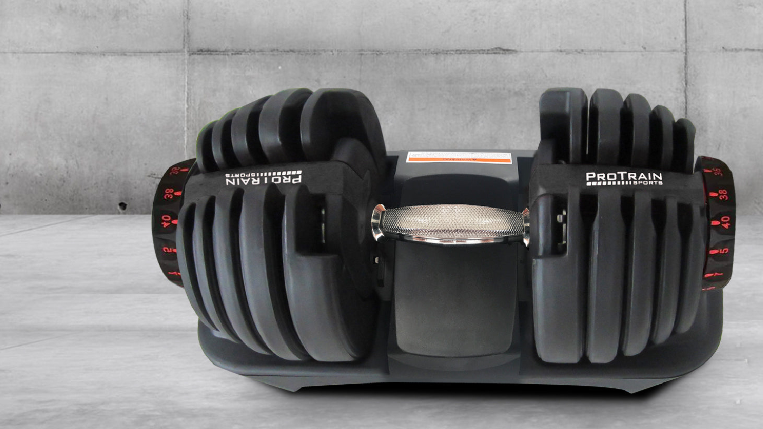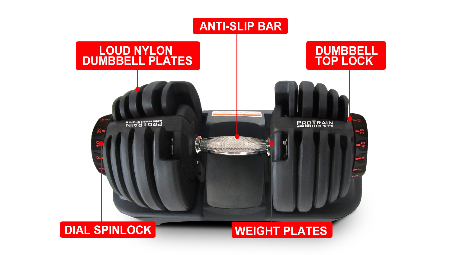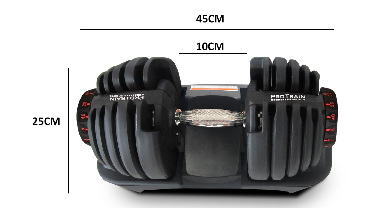 Transform your home workouts with the PROTRAIN Adjustable Dumbbell 5 - 40kg 2pcs. Experience the convenience of customisable weight in seconds, all in one sleek package. No more clutter or wasted time, just efficient muscle-building workouts with this durable, floor-friendly dumbbell.