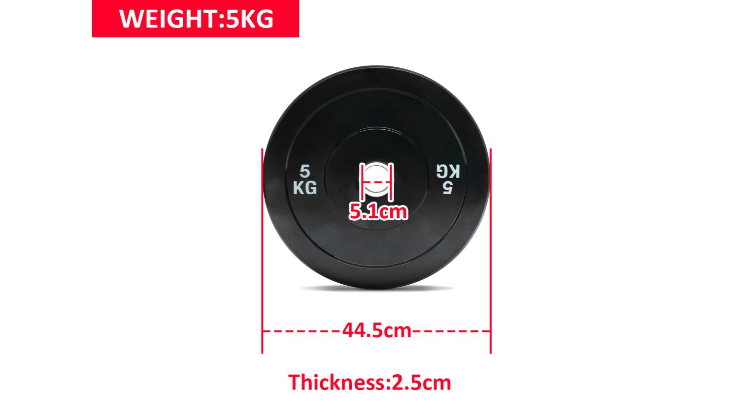 Experience the next level of strength training with PROTRAIN Rubber Coated Weight Plates! These 5kg plates are made from stainless steel and high-density virgin rubber, engineered to withstand the toughest workouts. Whether you're a beginner or a seasoned lifter, these low-bounce bumpers are designed for powerlifting and Olympic lifting.