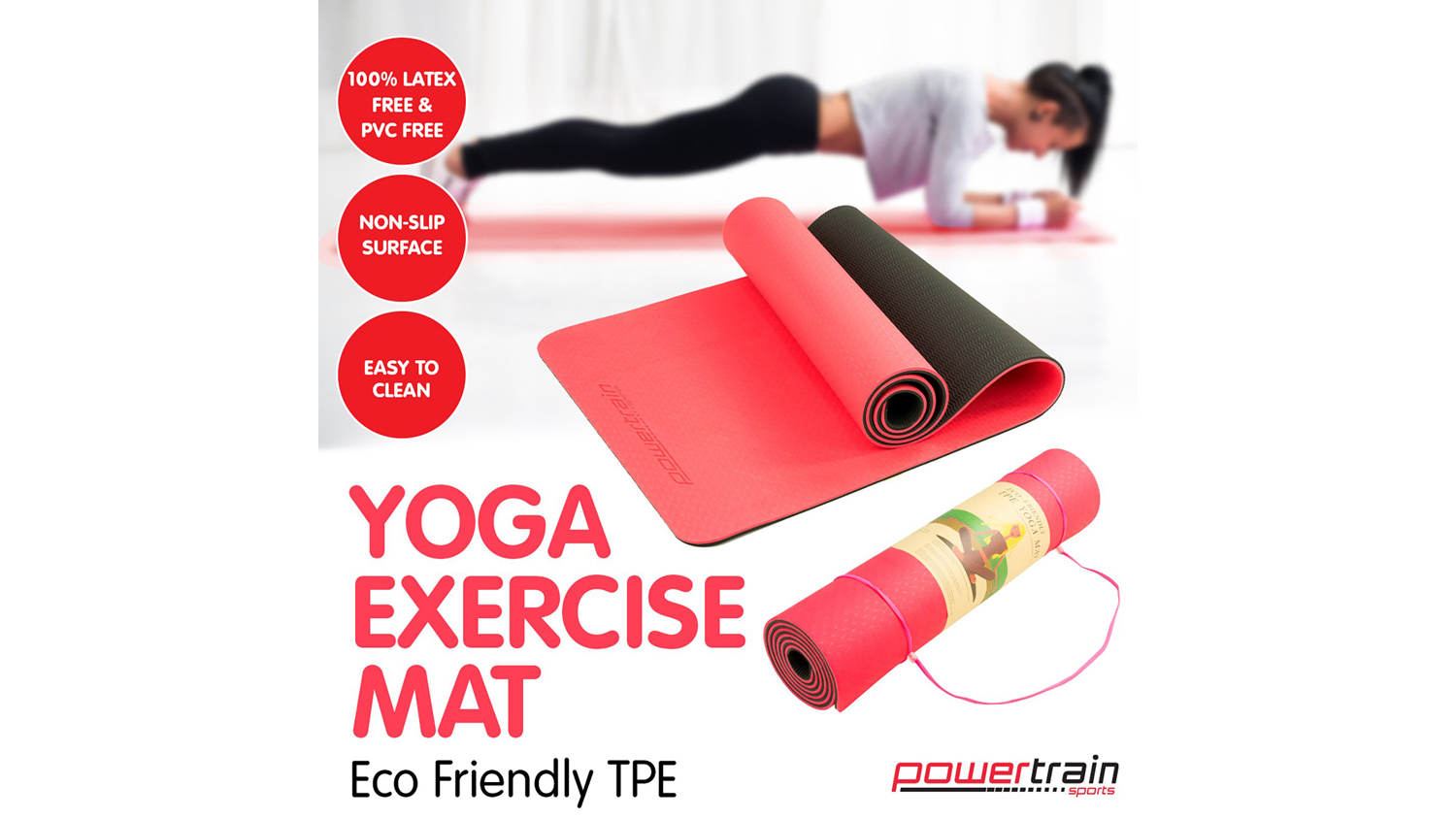 Powertrain 8mm Eco-Friendly TPE Yoga Exercise Mat - Red