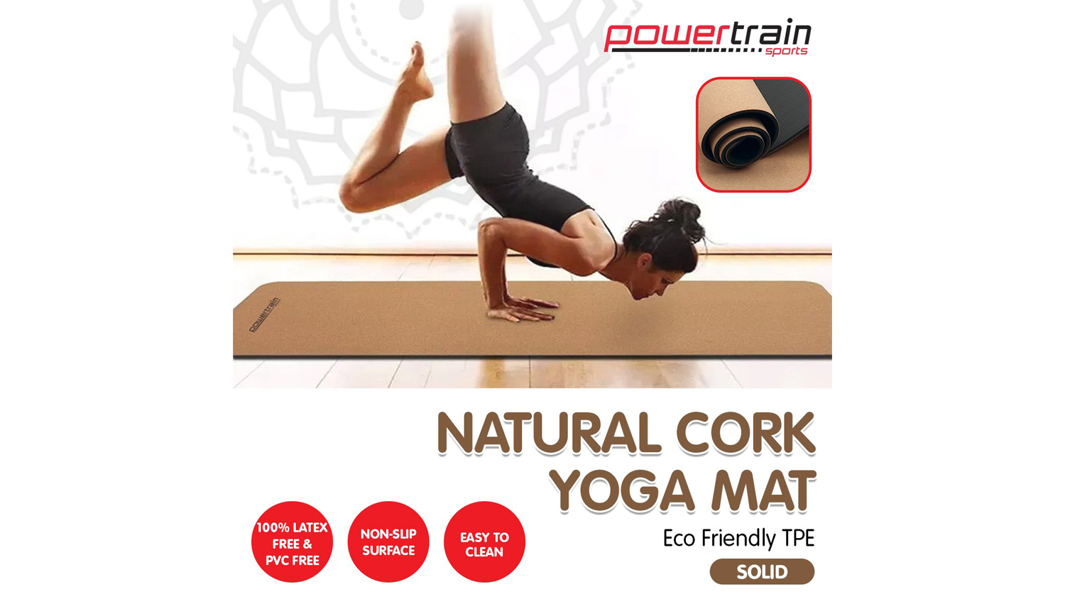 Gain more body strength as you enjoy training routines, floor exercises, or home workouts with the Powertrain Cork Yoga Mat! Made from natural cork material, this eco-friendly and durable mat is a great companion for your fitness-driven lifestyle. It also has a non-slip surface to provide superior cushioning and stable support.