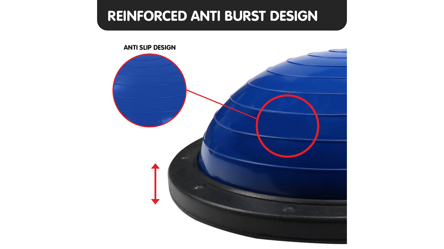 Get the most out of your core strengthening exercises with Powertrain Yoga Ball Balance Trainer! Engineered from PVC and rubber, this yoga ball is a great companion for your fitness-driven lifestyle. It features 8 rubberised anti-slip floor pads, a flat side, and a dome to ensure balance and proper form. Also, this compact trainer ball is 58cm in size, making it convenient for your on-the-go workout sessions.
