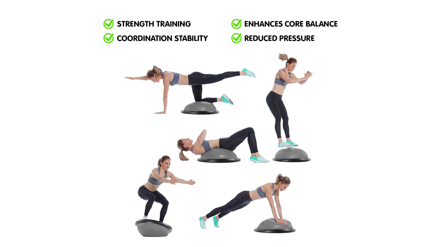 Get the most out of your core strengthening exercises with Powertrain Yoga Ball Balance Trainer! Engineered from PVC and rubber, this yoga ball is a great companion for your fitness-driven lifestyle. It features 8 rubberised anti-slip floor pads, a flat side, and a dome to ensure balance and proper form. Also, this compact trainer ball is 58cm in size, making it convenient for your on-the-go workout sessions.