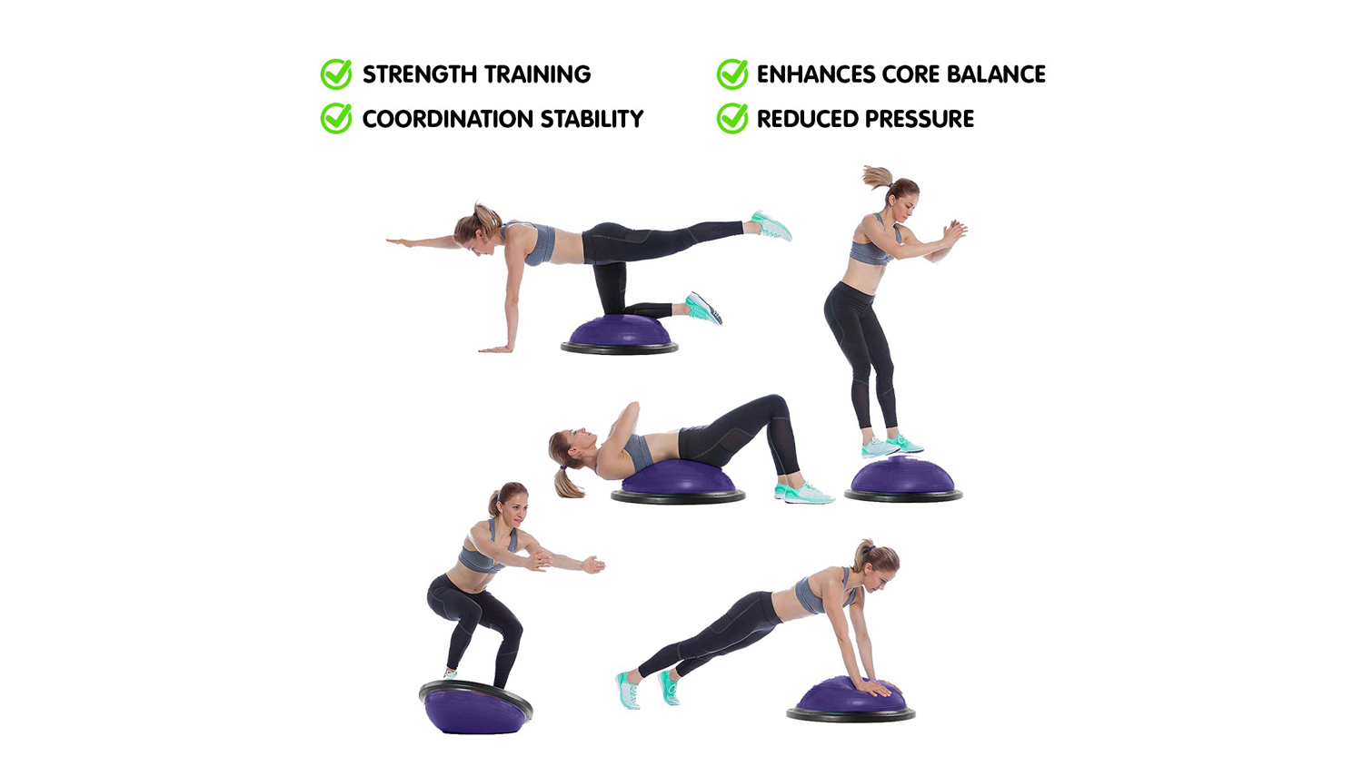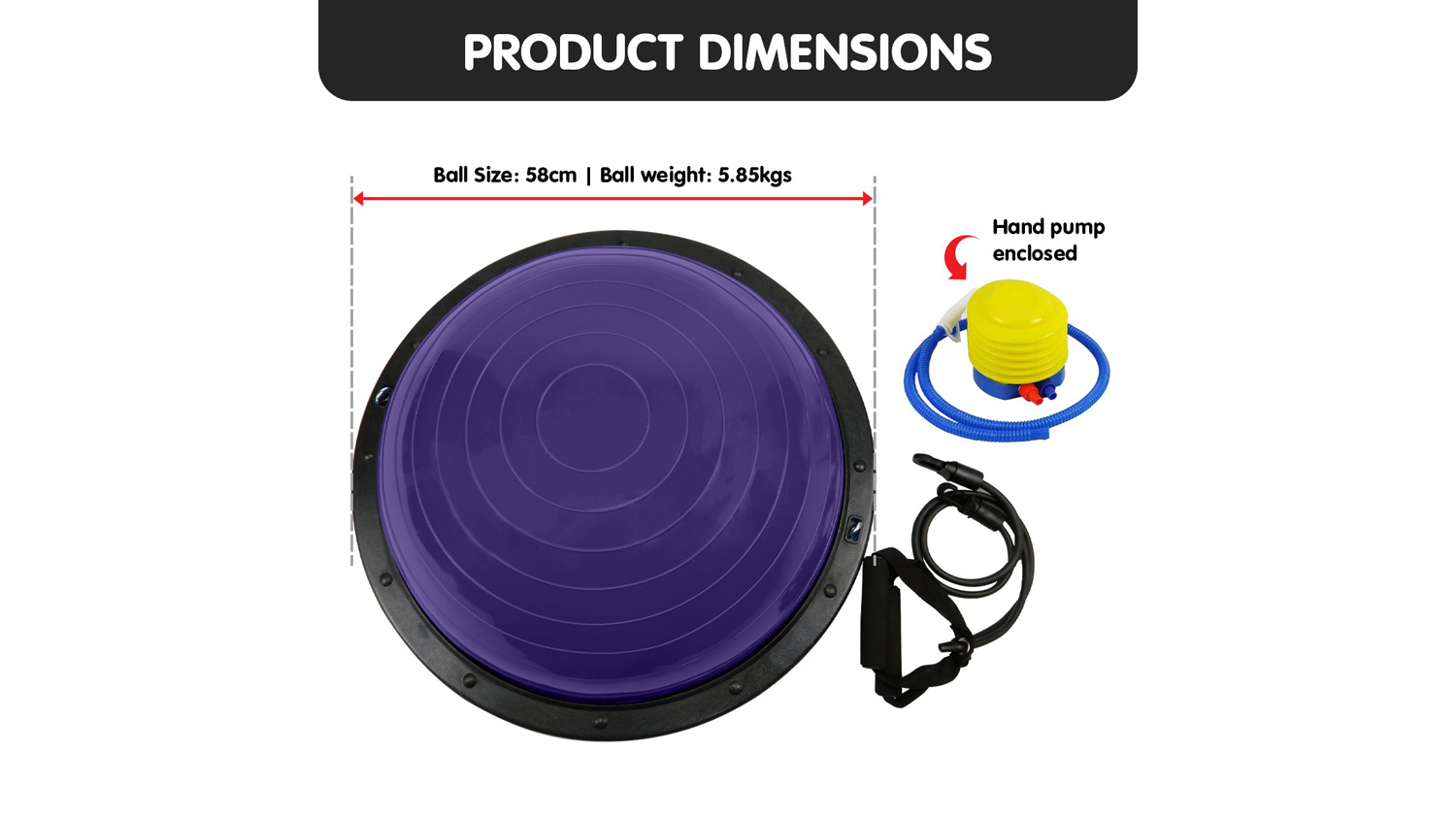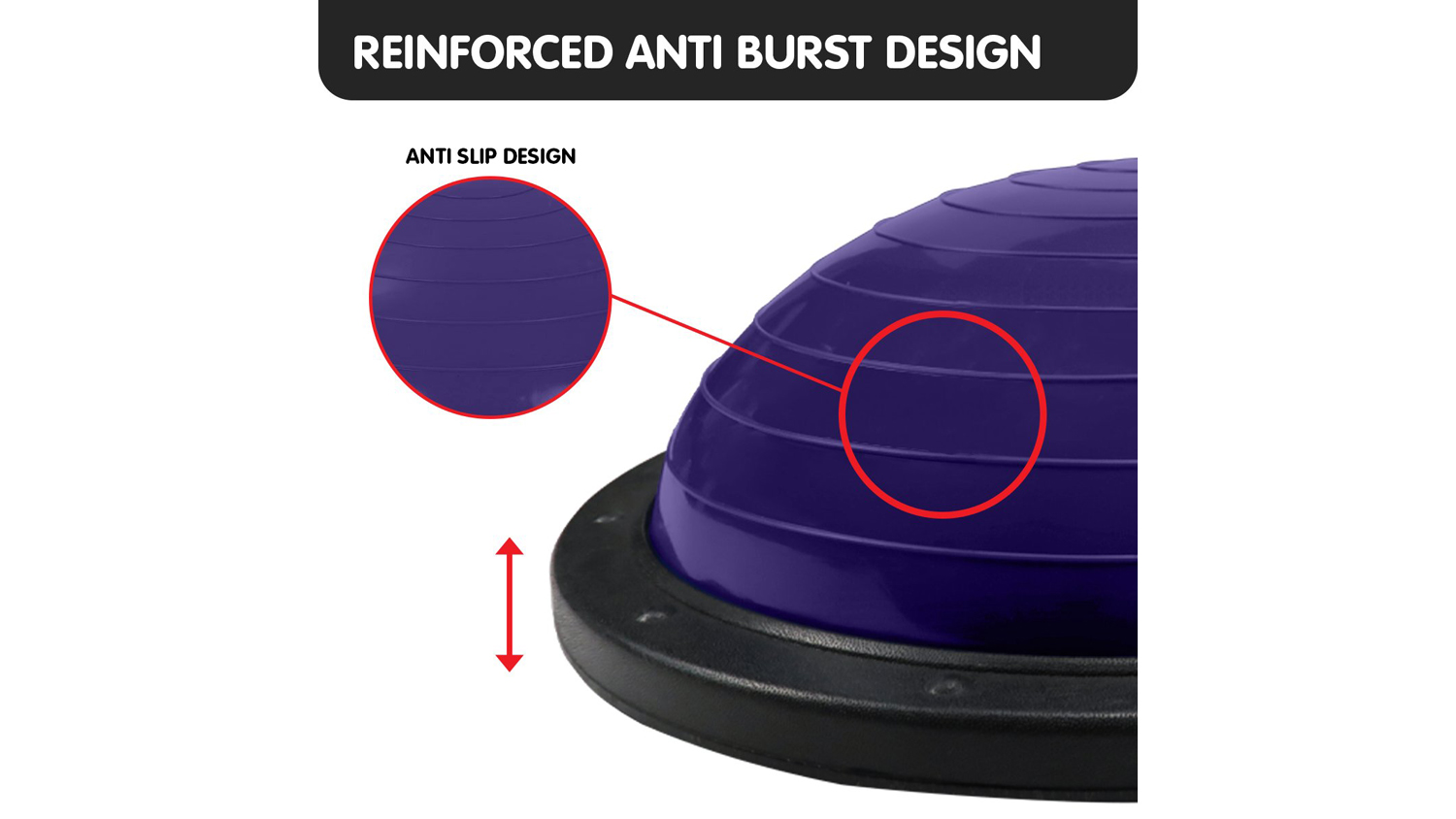 Get the most out of your core strengthening exercises with Powertrain Yoga Ball Balance Trainer! Engineered from PVC and rubber, this yoga ball is a great companion for your fitness-driven lifestyle. It features 8 rubberised anti-slip floor pads, a flat side, and a dome to ensure balance and proper form. Also, this compact trainer ball is 58cm in size, making it convenient for your on-the-go workout sessions.