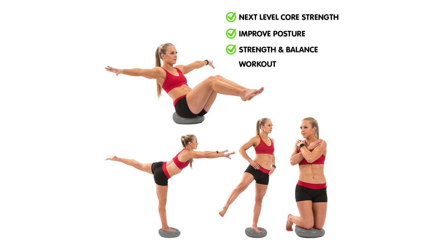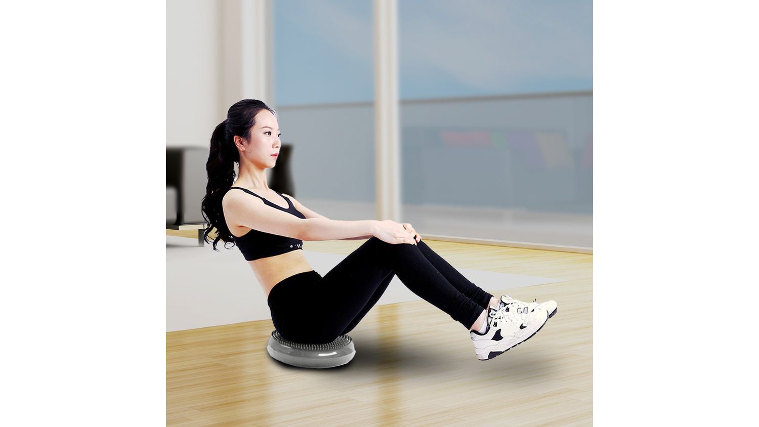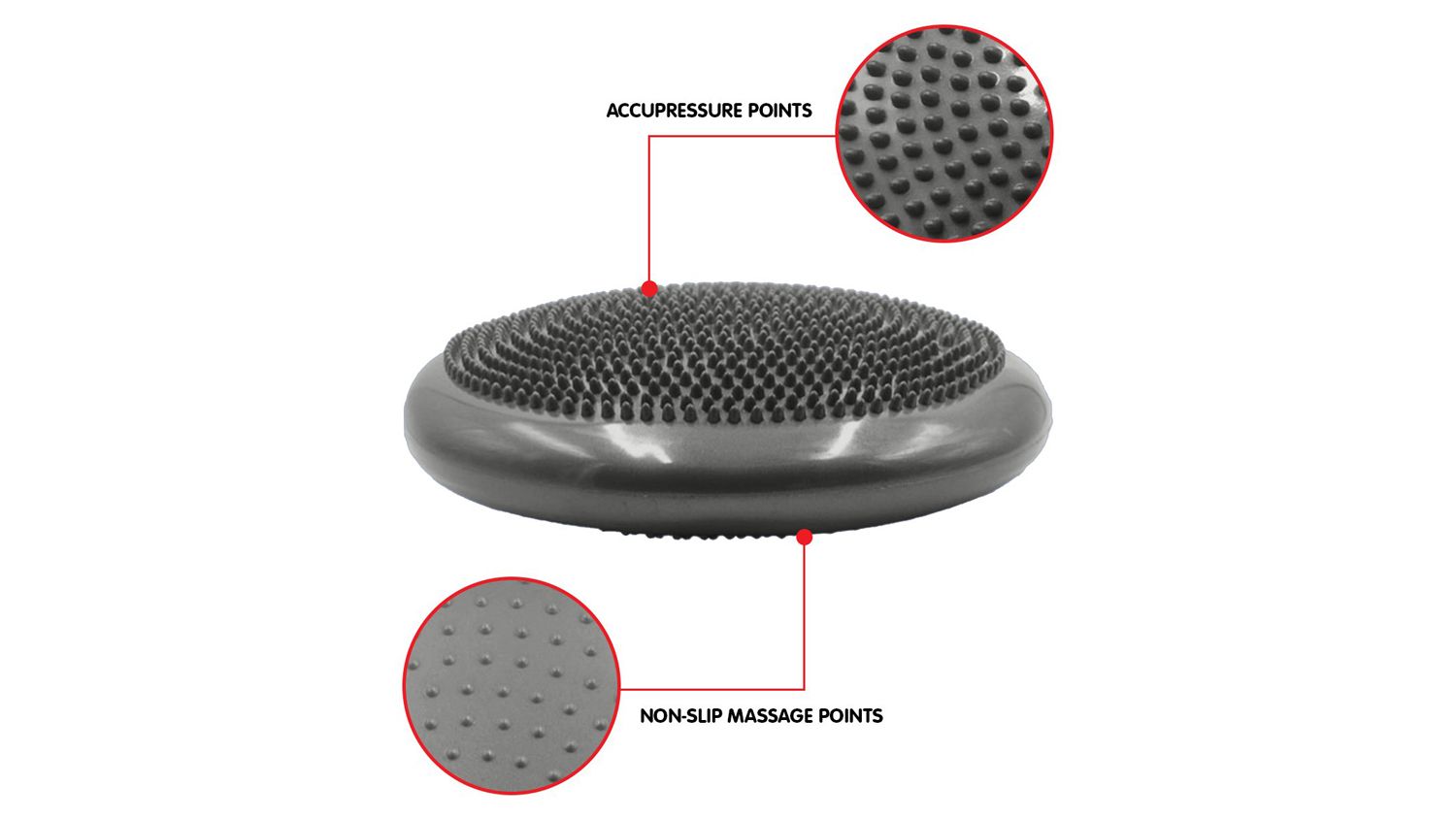 Improve your posture and perform a wide range of core strengthening exercises with the Powertrain Yoga Disc Balance Trainer! This stability disc is engineered from inflatable PVC, offering an unstable sensory-stimulating cushion to improve your balance and strengthen muscles. Also, one side of this 34.5cm disc is densely dotted, while the other side is scarcely dotted for the ultimate workout experience.