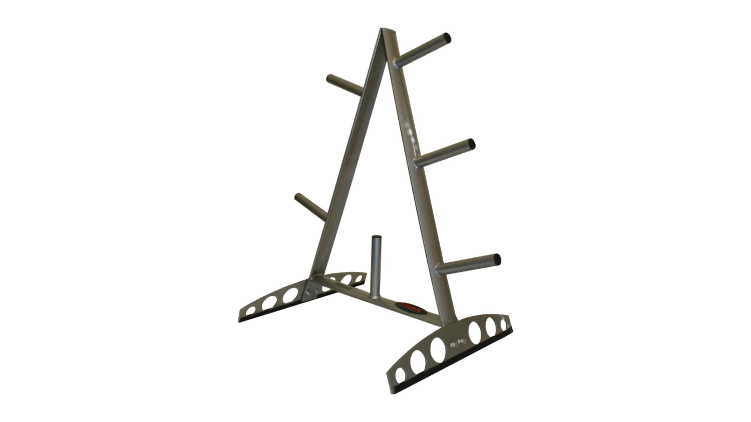 The York 1" Plate Rack keeps your weights organised and accessible! This A-frame rack can accommodate all standard-weight discs with a 1-inch hole. Made from curved steel with a durable powder-coated finish, it ensures lasting strength and resistance to wear. Now you can keep your gym tidy and your weights ready for action.