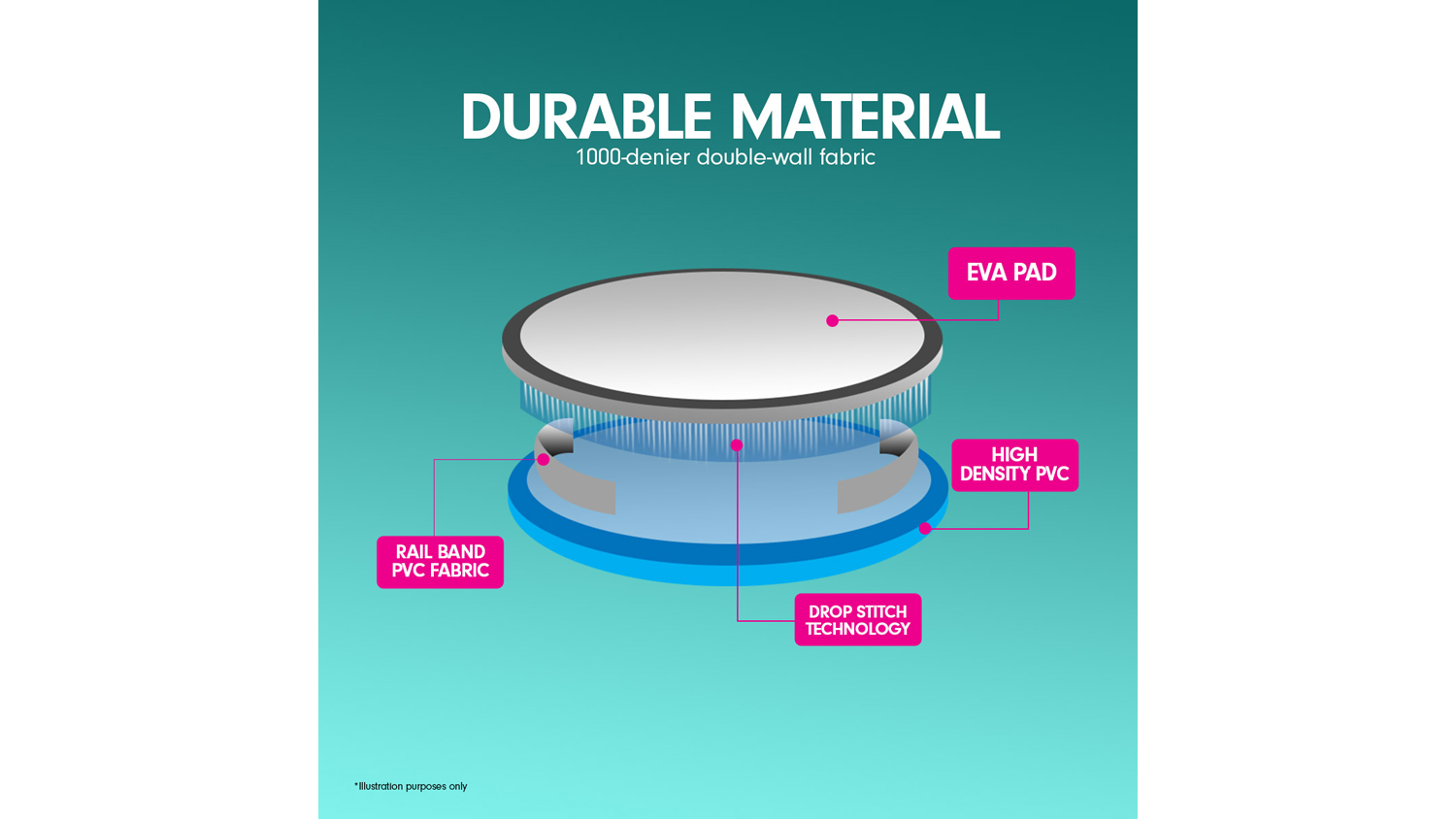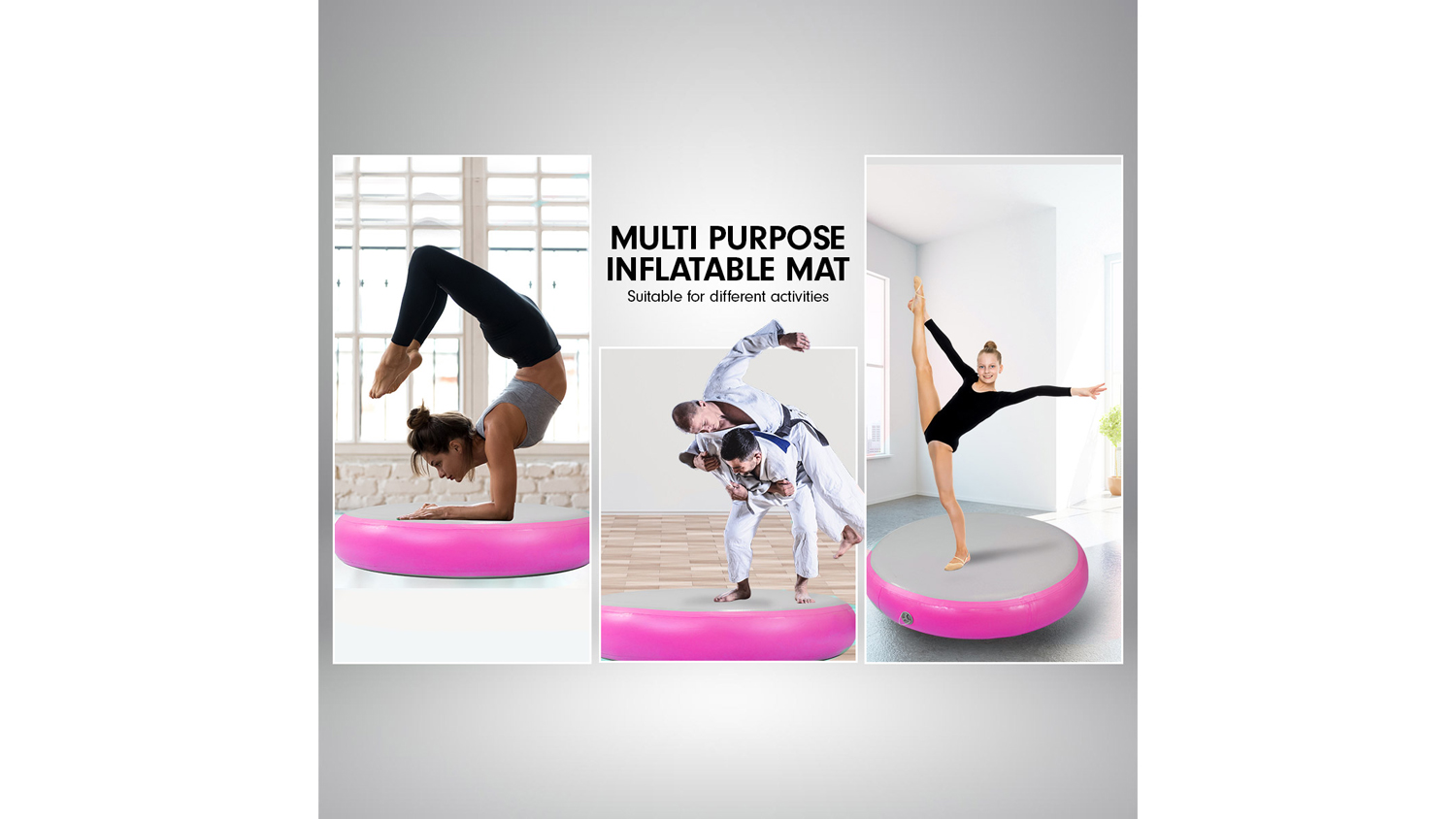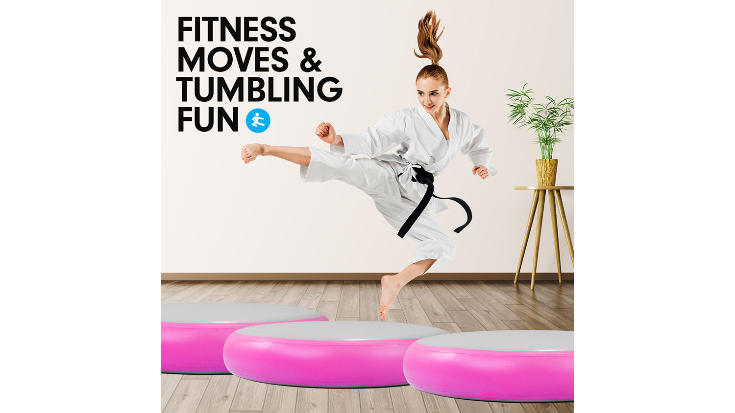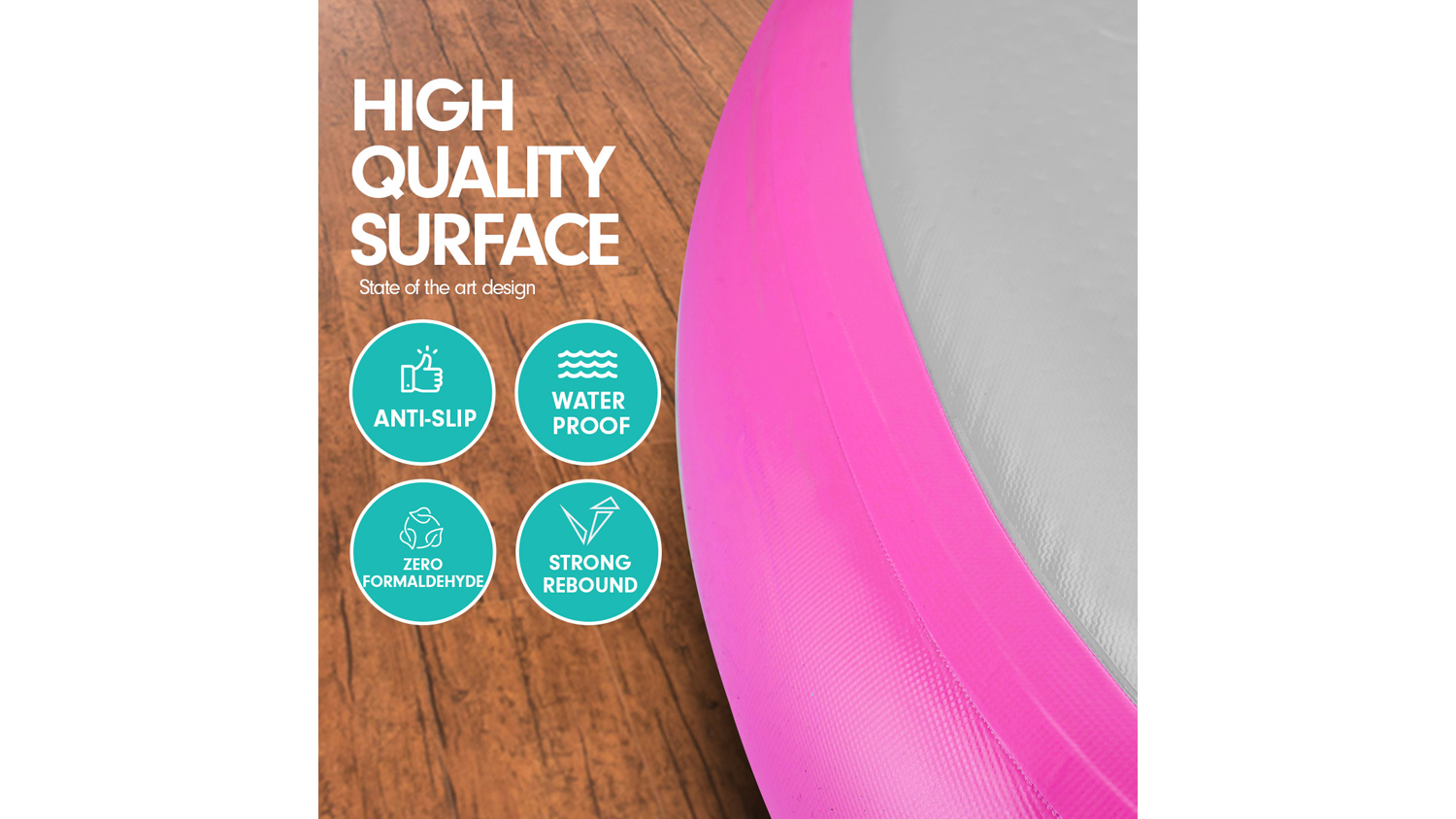 Level up your workout sessions with the Powertrain 1m Airtrack Spot Round Inflatable Gymnastics Mat! A reliable companion for cheerleading, gymnastics, gym sessions, fitness club events, and other high-intensity sports or competitions, this mat is an exceptional landing platform. It boasts drop stitch material and a 1.2 mm thick PVC tarpaulin, offering superior air tightness and durability.