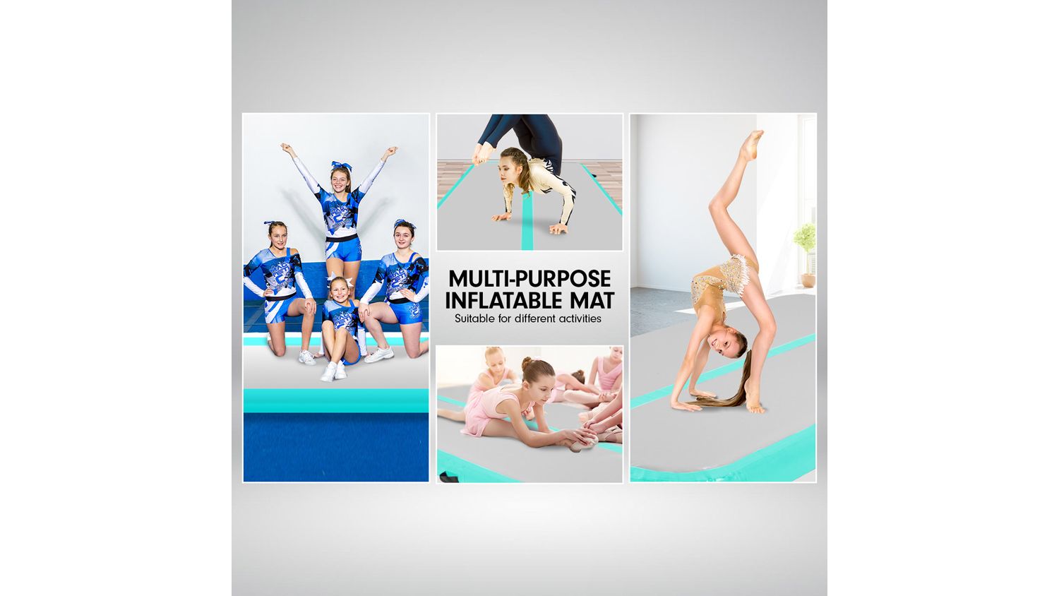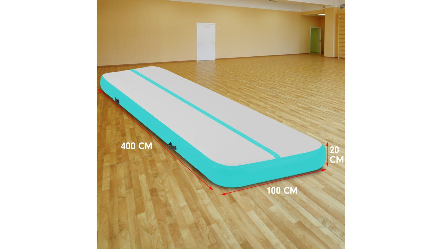 Level up your training sessions with the Powertrain Airtrack Inflatable 4x1m Tumbling Mat! A reliable partner for cheerleading, gymnastics, gym sessions, fitness club events, and other high-intensity sports, this mat is an exceptional training and competition landing platform. It boasts double-wall material and a 1.2 mm PVC tarpaulin, offering better air tightness and durability. Plus, it also integrates easy-carry handles for effortless transportation.