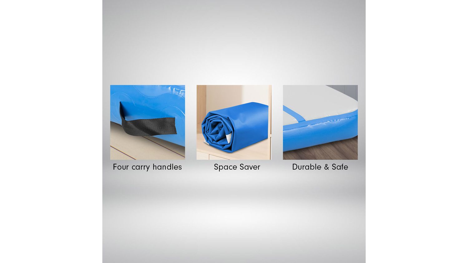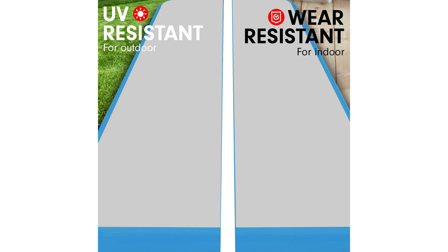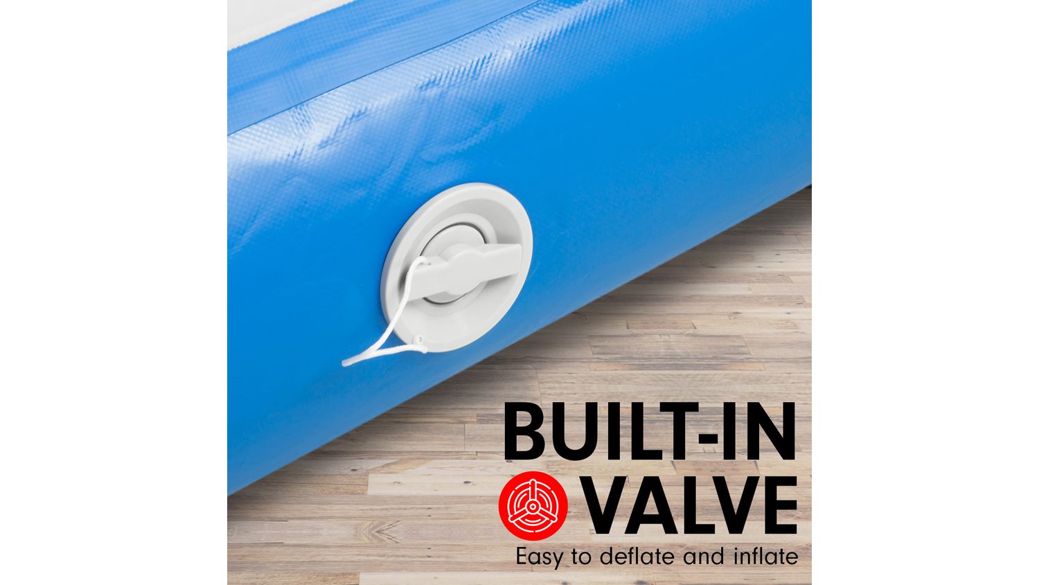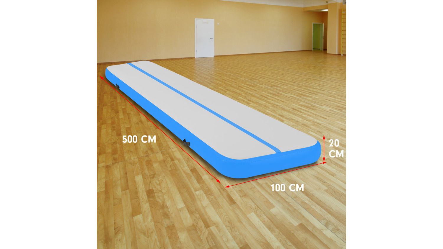 Level up your training sessions with the Powertrain Airtrack Inflatable 5x1m Tumbling Mat! A reliable partner for cheerleading, gymnastics, gym sessions, fitness club events, and other high-intensity sports, this mat is an exceptional training and competition landing platform. It boasts double-wall material and a 1.2 mm PVC tarpaulin, offering better air tightness and durability. Plus, it also integrates easy-carry handles for effortless transportation.