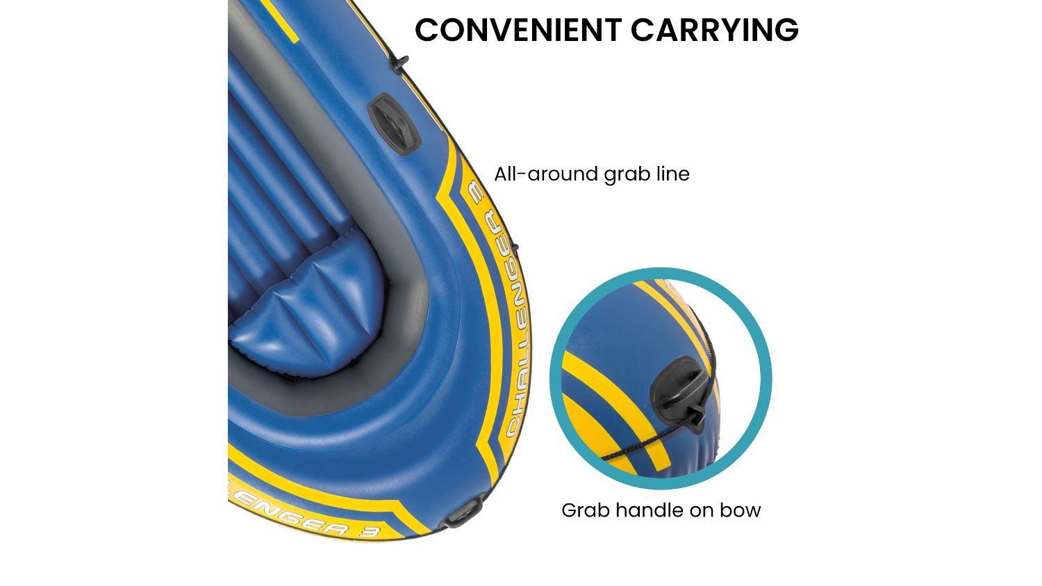 Get ready for thrilling water adventures with the Intex Challenger 3 Inflatable Boat with Oars and Pump. Designed for adrenaline junkies and water enthusiasts, this boat is your gateway to excitement, speed, and pure exhilaration. With its exceptional features and high-performance design, it's time to unleash your inner thrill-seeker and experience water-bound adventures like never before.