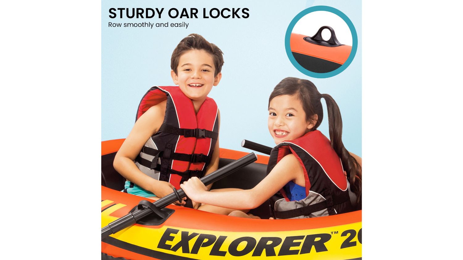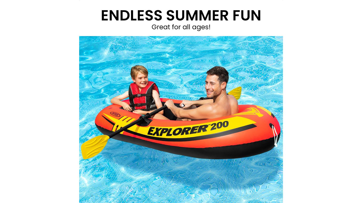 Get ready for water thrilling adventures with the Intex Explorer 200 Inflatable Boat with Oars and Pump. Whether you are buying it for yourself or your kids, this boat is a must-have this summer. This boat is your ticket to endless fun. With its exceptional features and unmatched durability, it's time to embrace the explorer in you and embark on aquatic journeys like never before.