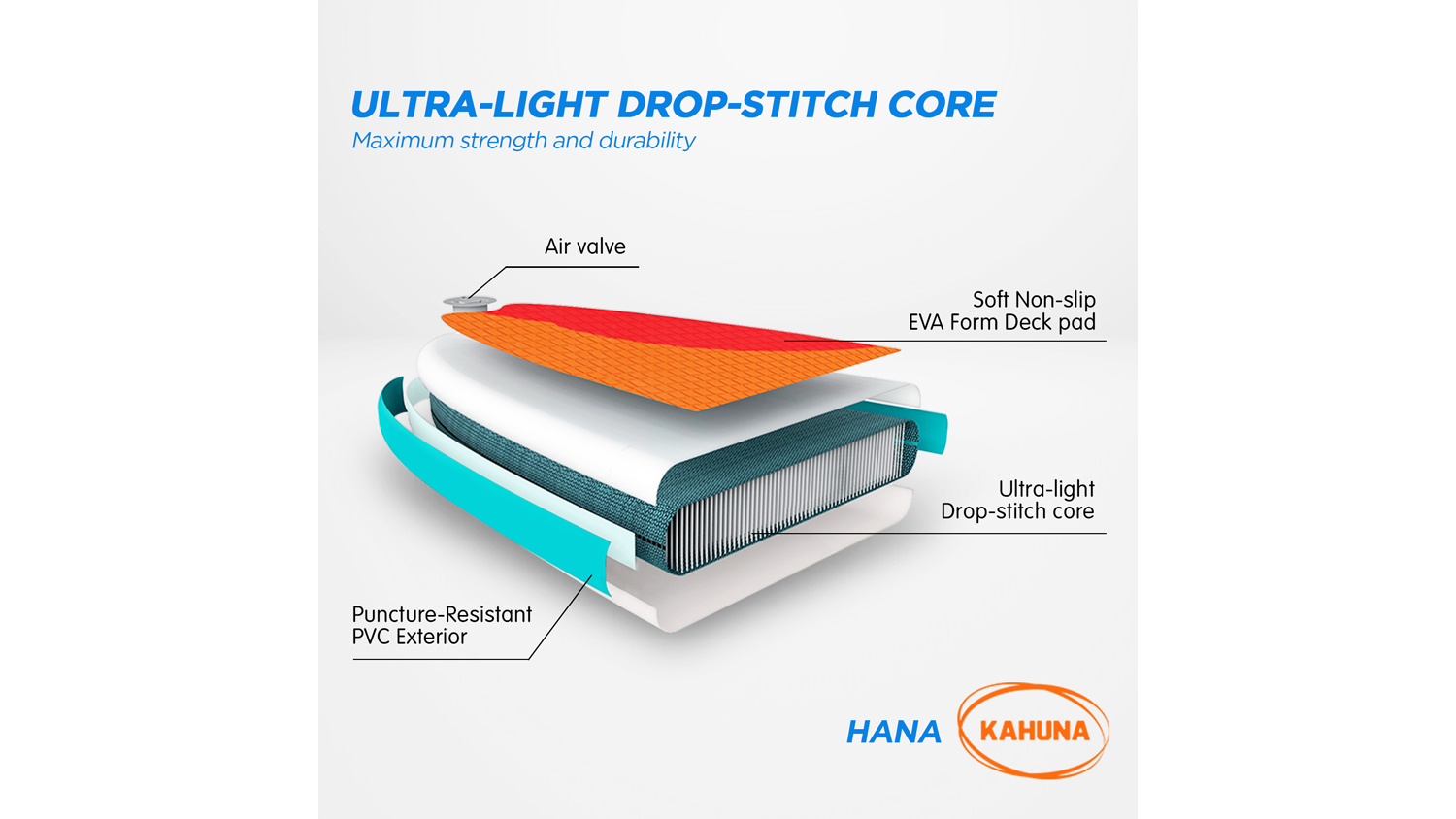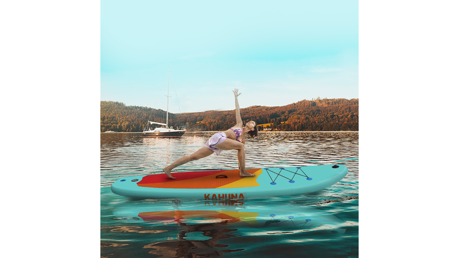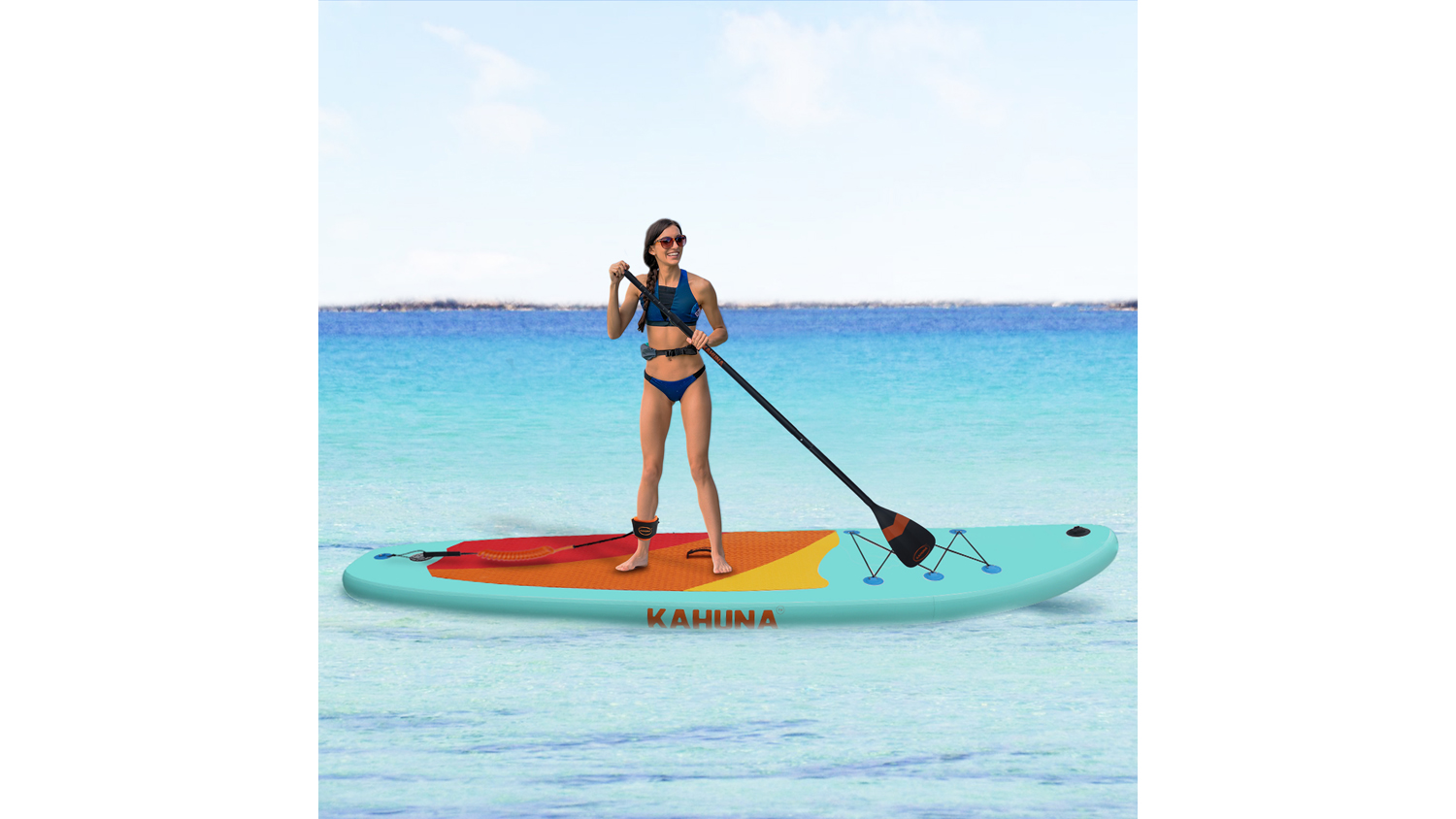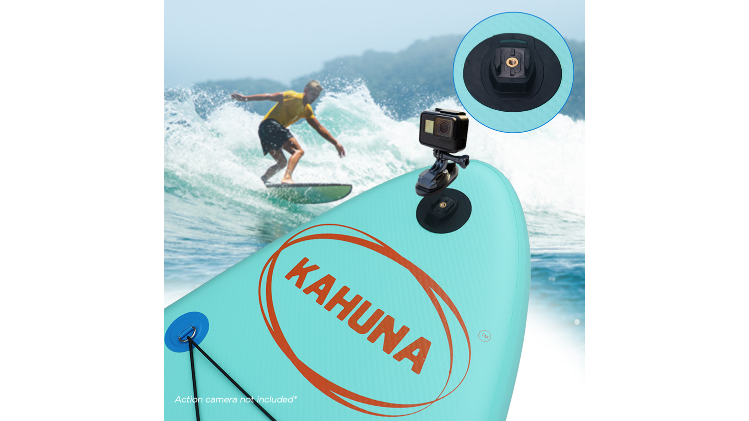 Have a blast at the beach with Kahuna 10.6ft Inflatable Stand-Up Paddle Board! This complete iSUP package is the ultimate companion when surfing, cruising, and exploring the water. Great for professionals and hobbyists alike, this paddleboard boasts top-quality drop-stitch weave and a reinforced multi-layer PVC exterior. It also features an adjustable aluminum paddle for easy maneuvering, two side fins for superior speed and smooth steering, and a removable centre fin. Whether you love yoga, touring, surfing, or simply stand-up paddle boarding, this 10ft 6” board is the perfect choice for fun and relaxation.