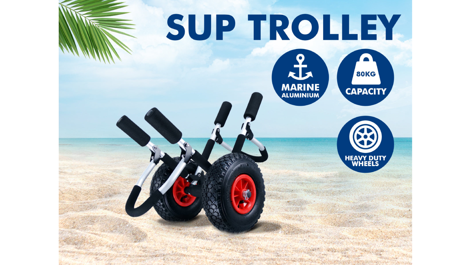 Take your paddleboard to and from the beach with the TSB Living Stand-Up Paddleboard Transport Trolley. This innovative trolley features lightweight aluminium construction, soft foam pads, and wide pneumatic tires that make it easy to transport.