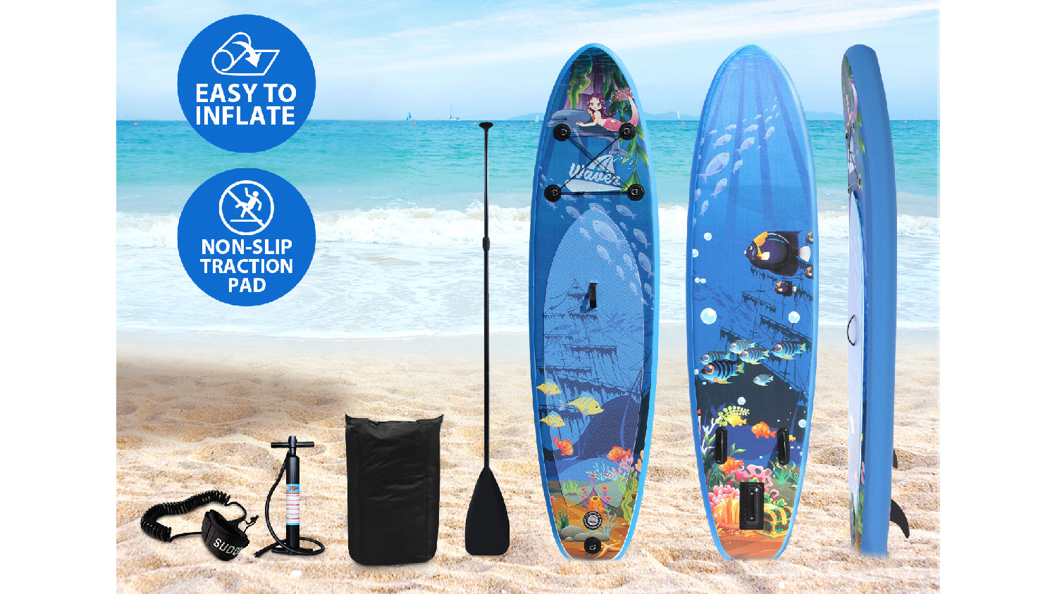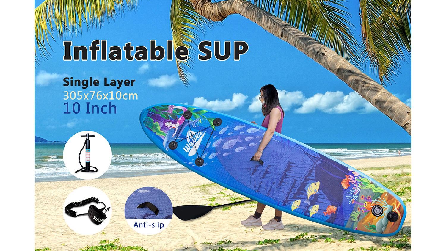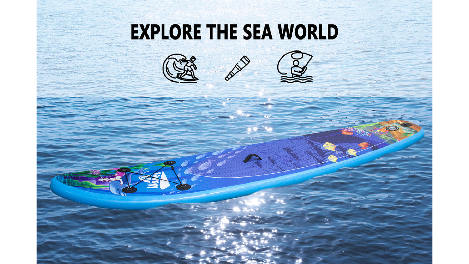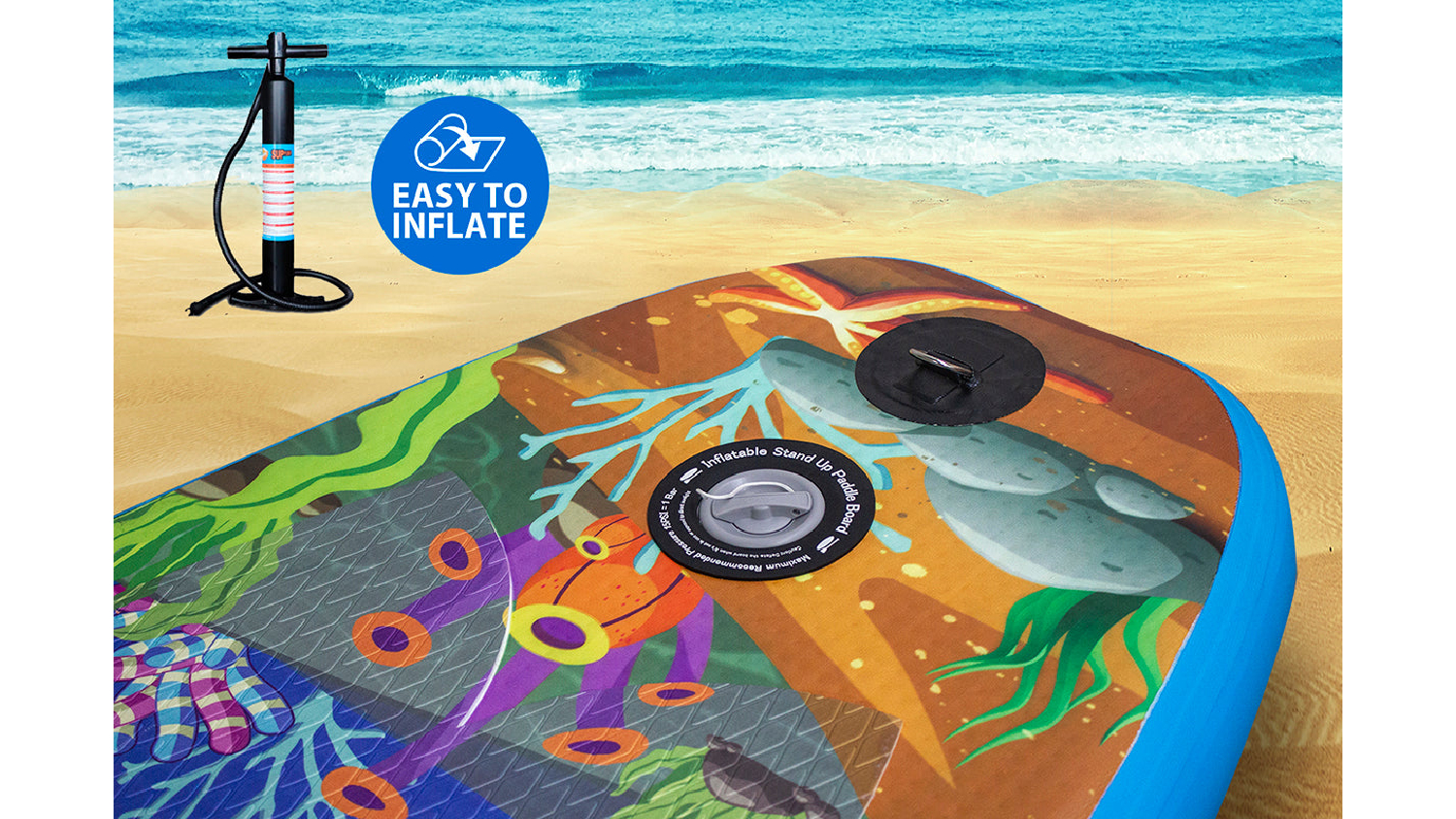 TSB Living Inflatable Stand Up Paddleboard 10' with Paddle, Repair Kit - Cartoon Sea