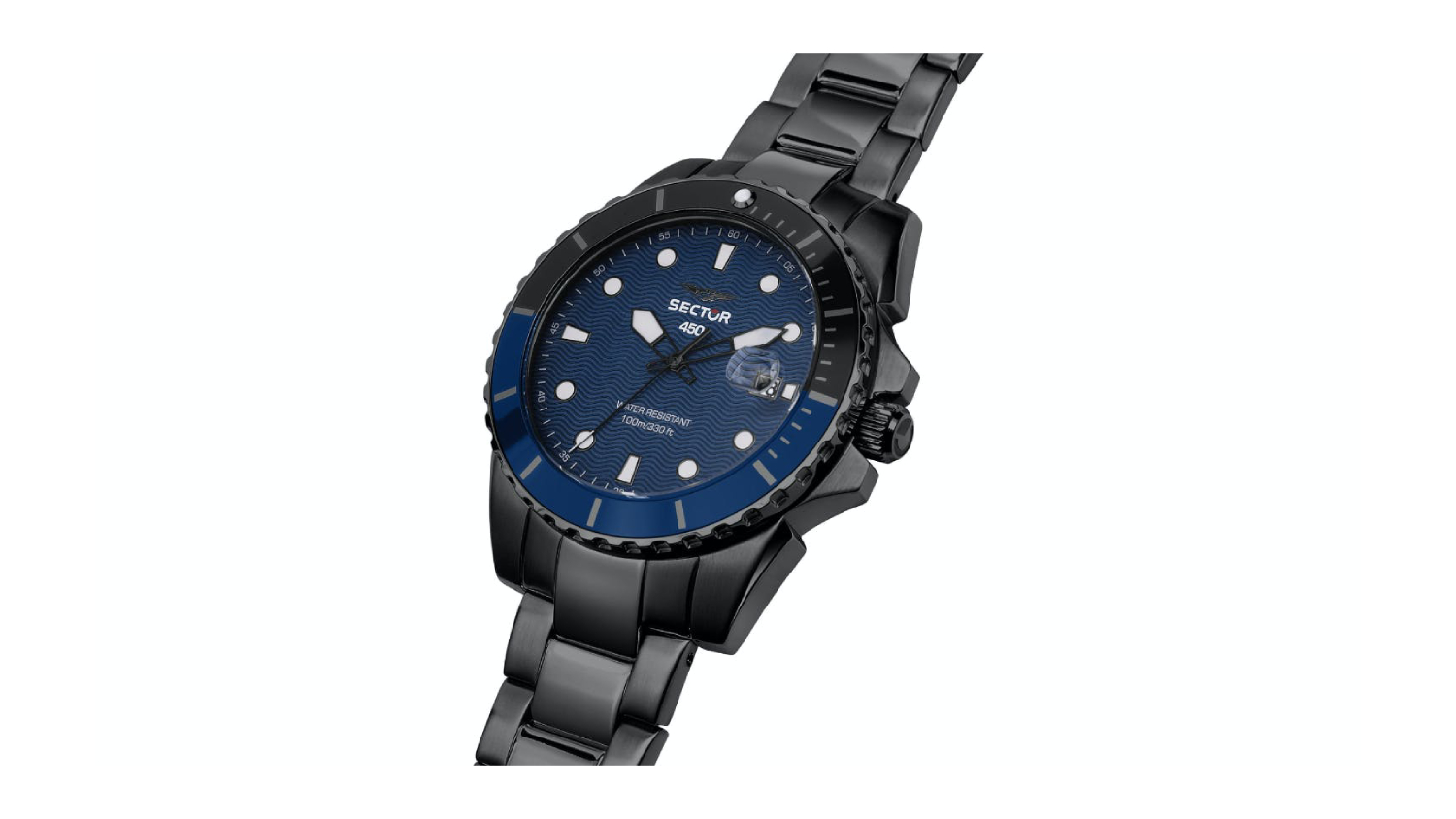 The Sector 450 Black Bracelet Watch is a timepiece that embodies elegance and reliability. Designed for those who appreciate fine craftsmanship, this watch boasts a striking design and impeccable attention to detail. The sleek black strap and blue dial create a bold and eye-catching combination that commands attention.