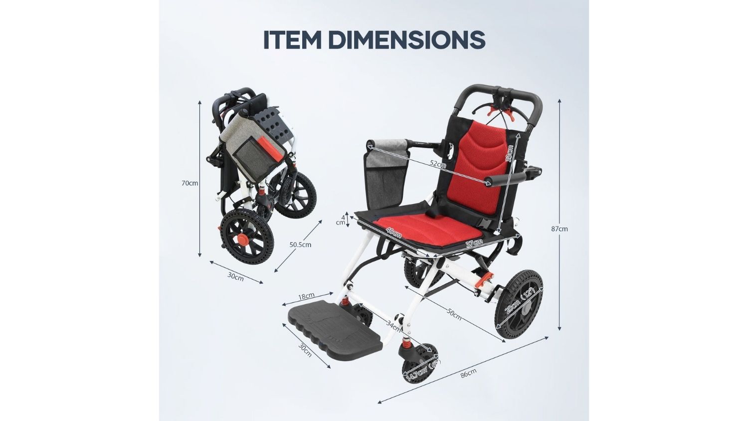 The Auswheel Folding Wheelchair with Rear Handle Brakes 12" offers a perfect blend of strength and portability, built from quality iron and designed to fold easily for travel or storage. Suitable for users up to 100kg, it ensures safe, smooth mobility with four brakes and a 12‑inch rear tyre paired with a 6‑inch front caster. Comfort is prioritised with a breathable seat cushion, tall backrest, and padded, adjustable armrests that simplify transfers and improve seating support. A handy back pocket also keeps your essentials secure and accessible on the go.