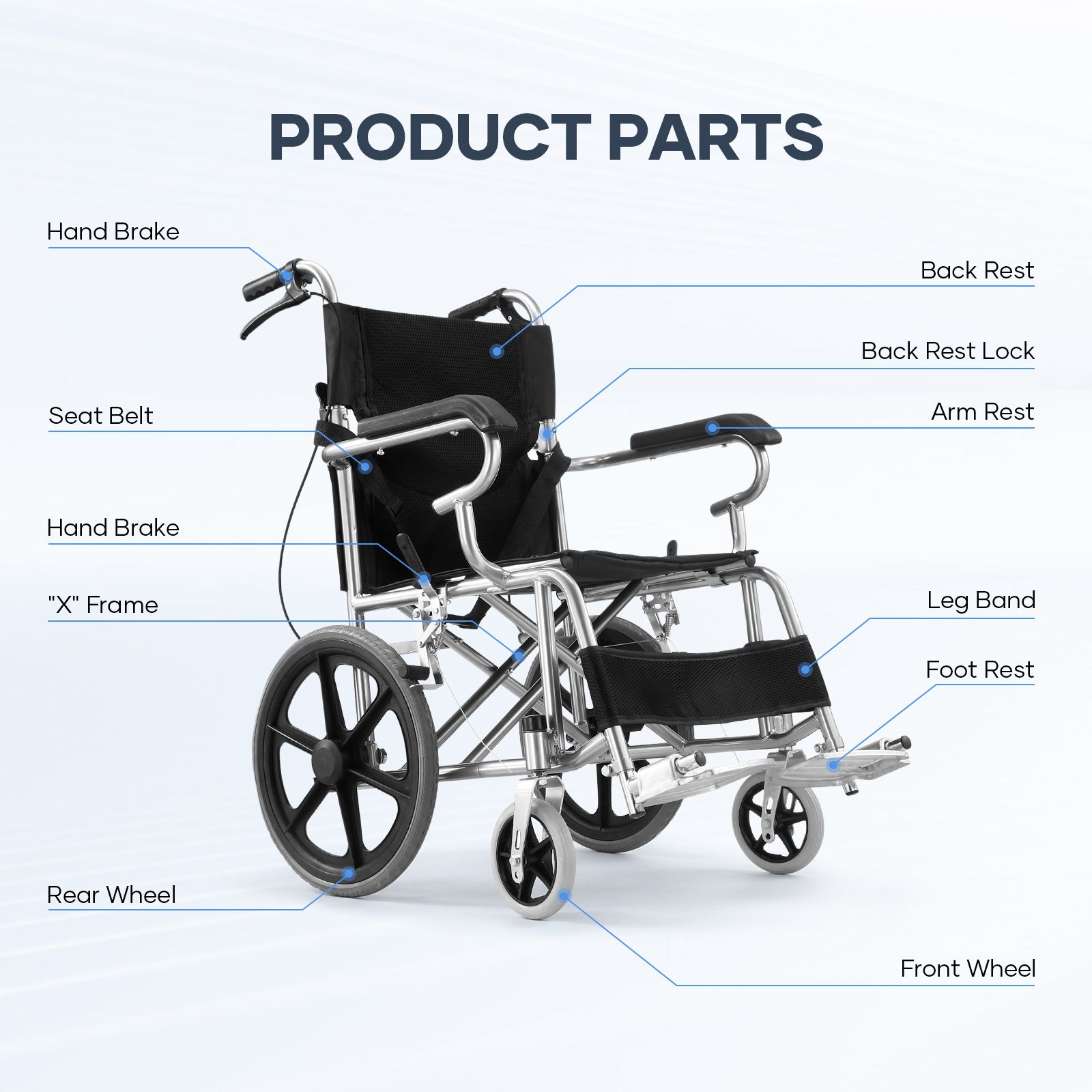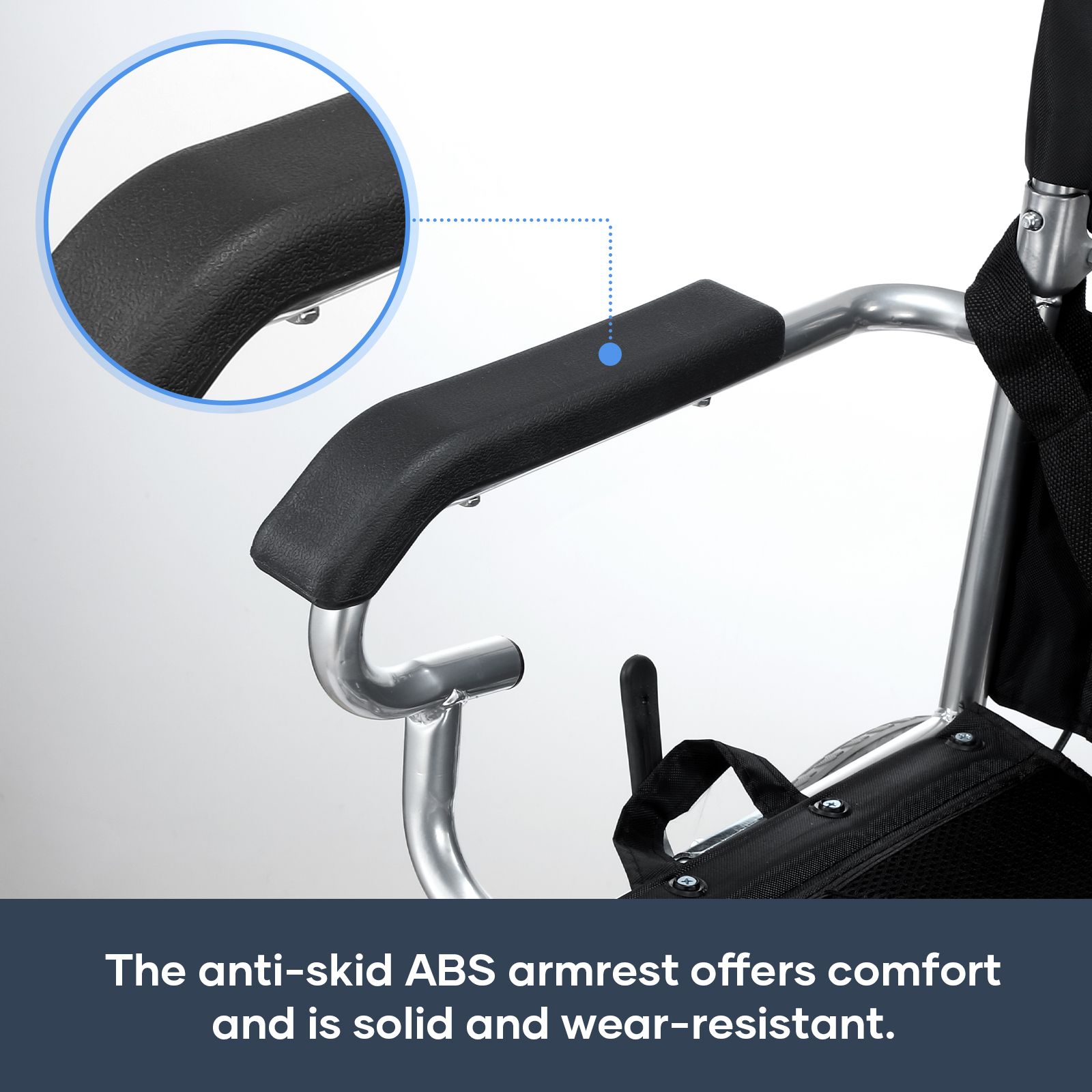 Experience smoother, easier mobility with the AUSWHEEL 16 in Folding Wheelchair—a lightweight yet durable aid built with a strong powder‑coated steel frame. It folds quickly for effortless travel and storage, supports up to 100kg, and offers a stable ride. Enjoy long‑lasting comfort from its breathable cushion, extra‑tall backrest, and padded anti‑skid armrests, plus a handy rear pocket for essentials. Finished in sleek black, it’s designed for everyday comfort, safety, and convenience.
