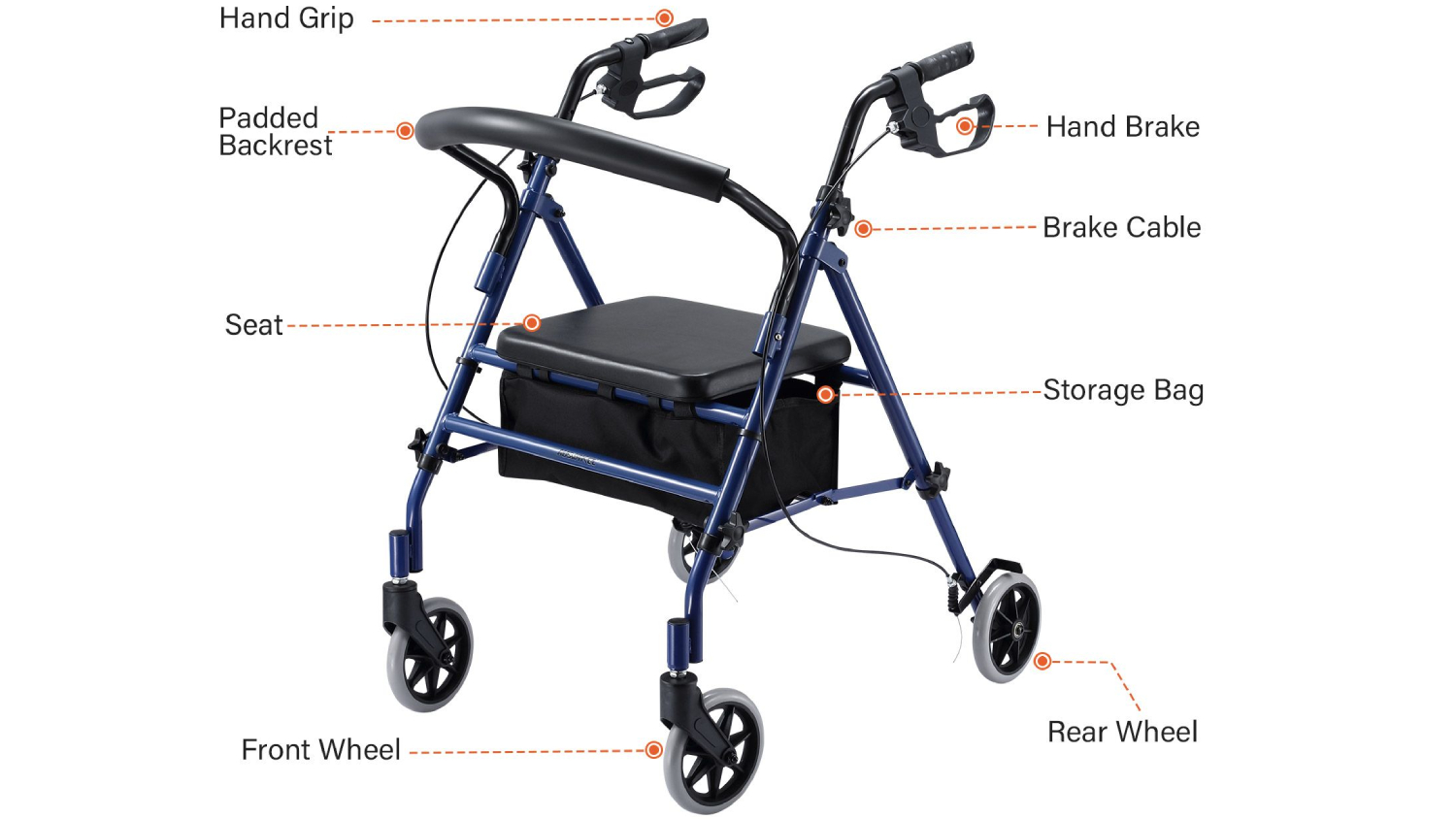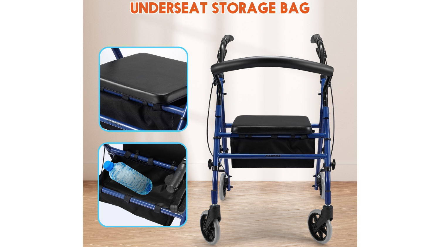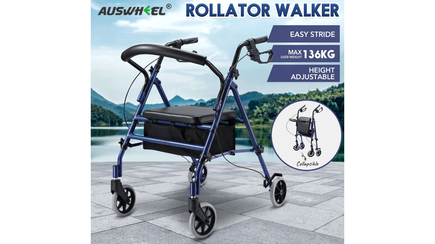 Auswheel Four Wheel Rollator Mobility Aid - Blue