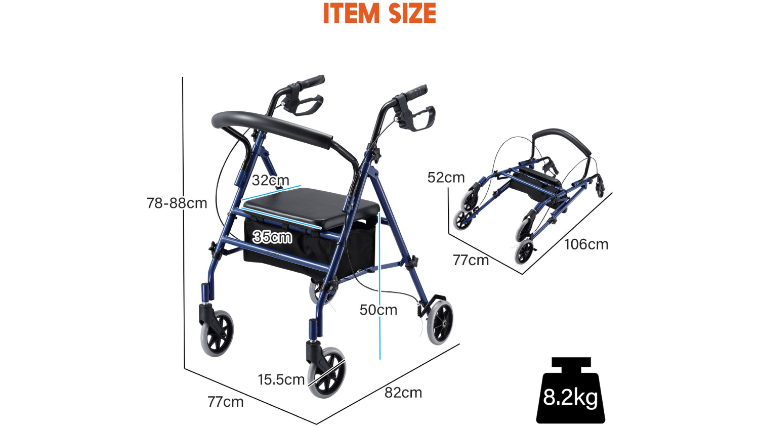 Stay supported wherever you go with the AUSWHEEL 4‑Wheel Rollator, a mobility companion built for strength and comfort. This walking trolley boasts a durable steel frame and rust‑resistant finish, while the four sturdy nylon wheels glide smoothly over various terrains. When you’re ready for a break, enjoy the comfort of its seat, designed to stay firm and secure. Safety comes built in with reinforced leg connectors that help prevent tipping under pressure. Plus, it folds easily, weighs lightly, and includes a handy Oxford cloth storage bag, making travel and storage effortless.