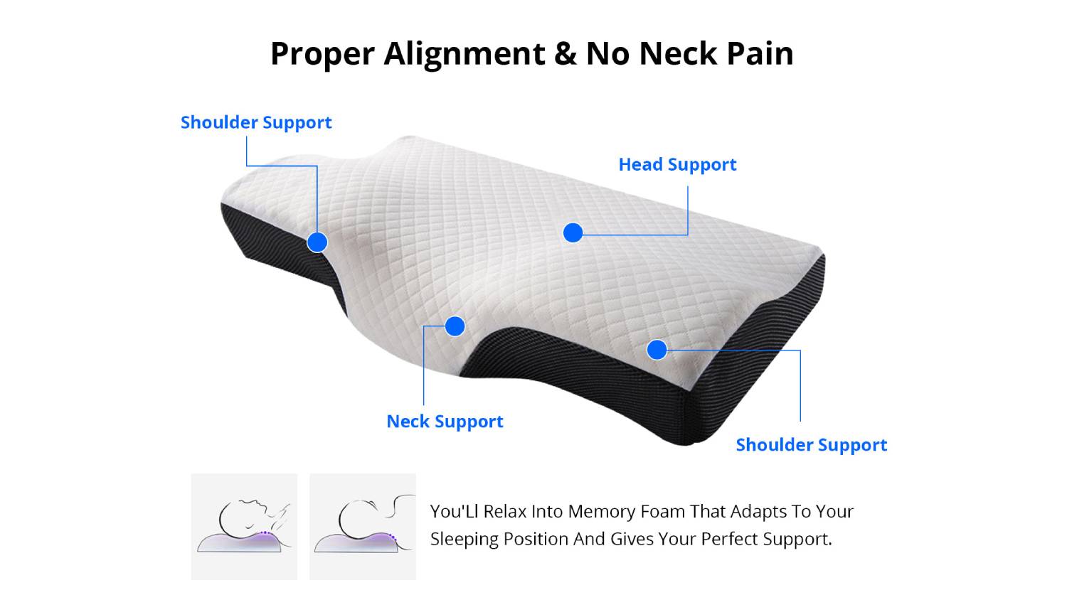 Say goodbye to a sore neck with the TSB Living Contour Memory Foam Pillow. This orthopedic neck support cushion features a unique butterfly design to support your head, neck, and shoulders, helping to relieve pressure and improve your posture. With two height options and a contouring memory foam core, it's perfect for both back and side sleepers. Plus, the pillow stays fresh and cool all night, thanks to its breathable 3D mesh panels and a removable, washable knitted cover.