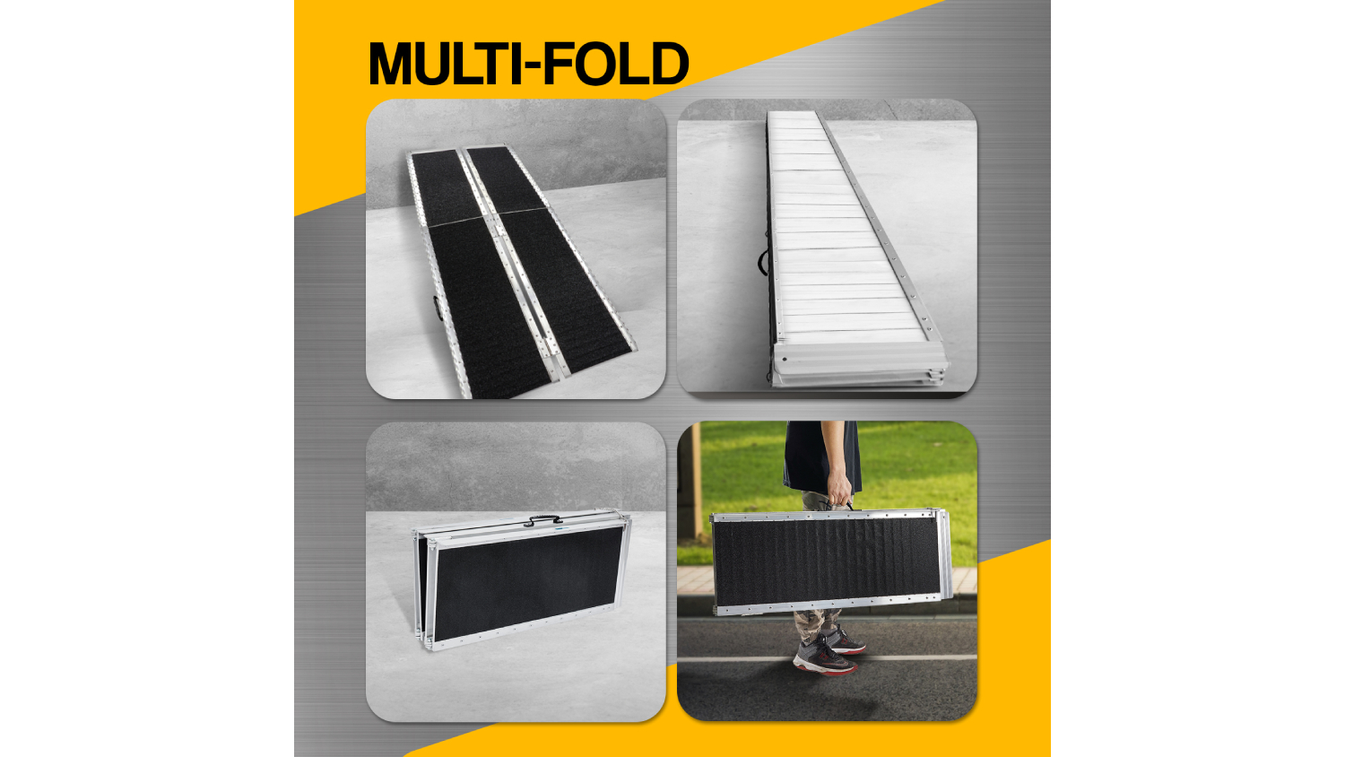 The Klika Aluminum Portable Extra-Grip Wheelchair Ramp provides ultimate convenience and accessibility! This ramp is the perfect solution for climbing steps and kerbs or for getting into your vehicle. It also features a high-grip surface, a four-way folding design, and a maximum loading capacity of 272kg.