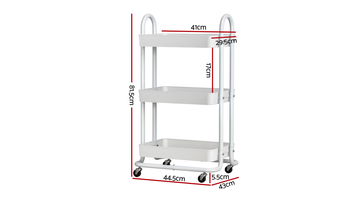 Artiss Modern Metal 3 Tier Storage Trolley - White