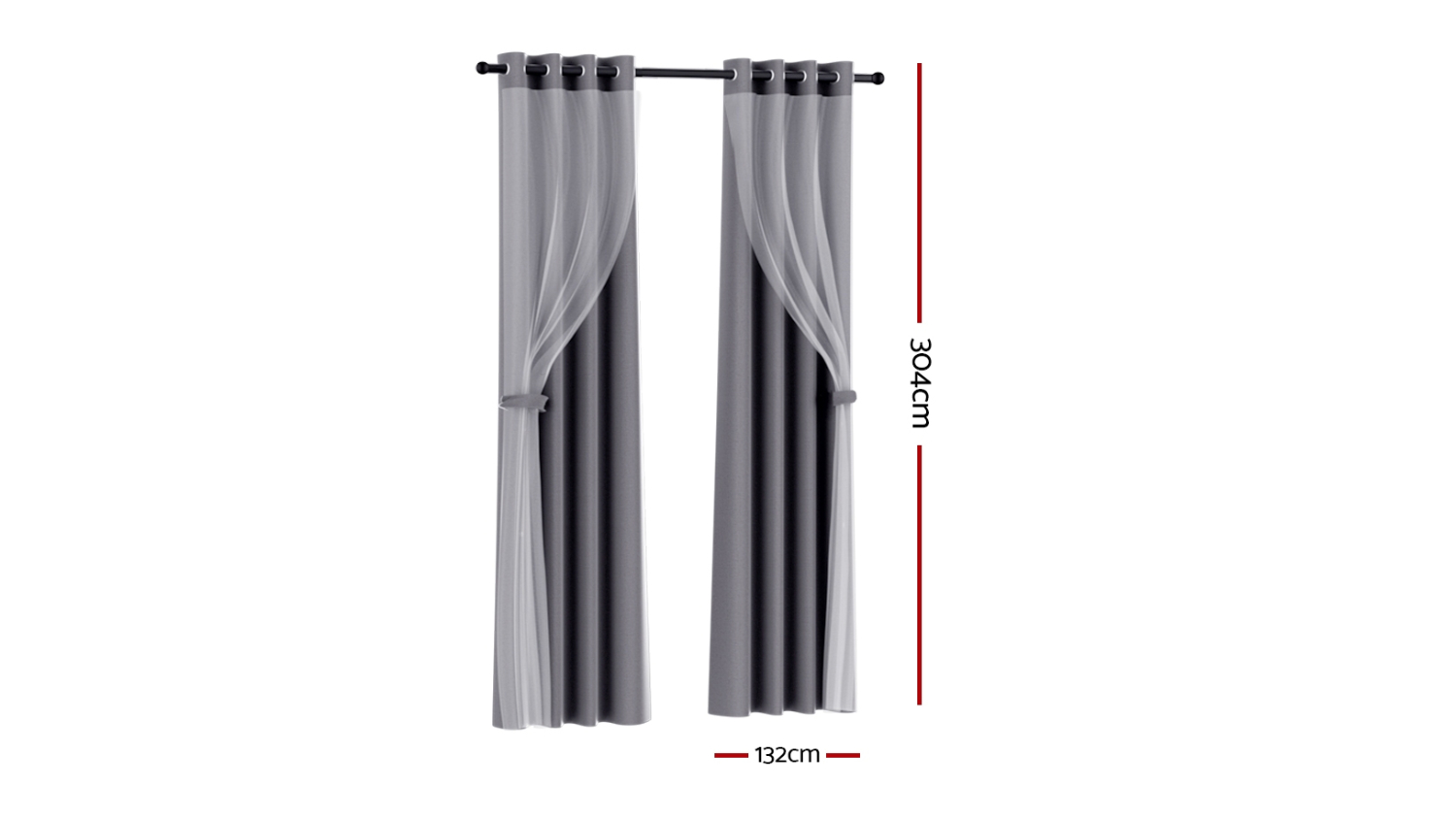 Say goodbye to harsh sunlight with the Artiss Multi-Layer Eyelet Sheer Curtains with Blackout Lining 132 x 304cm 2pcs! With an innovative triple-weave fabric, this curtain blocks out rays, provides thermal insulation, and enhances sound reduction. It is perfect for creating a cool, quiet sanctuary in any room. Plus, they're easy to maintain with machine-washable fabric and strong eyelets for a hassle-free setup.