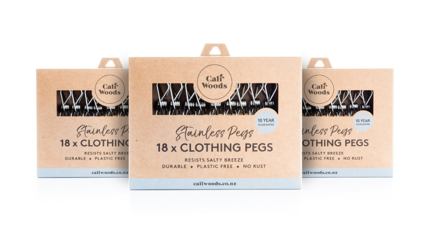 Sleek and functional, the Caliwoods Stainless Steel Clothing Pegs 18pcs Family Pack are the ultimate household accessory. This bundle includes 3 packs, each containing 18 pegs made from Marine Grade stainless steel that won't rust even in harsh New Zealand weather conditions. Use them to secure laundry, organise cables, or reseal sachets—the possibilities are endless!