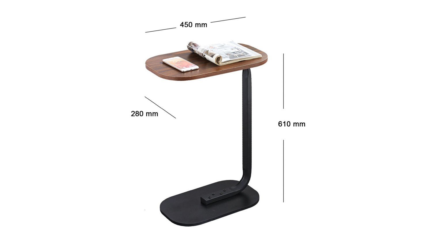 Stylish yet functional, the TSB Living Chris Rectangle End Table is a wonderful addition to your space. Crafted with a walnut-coloured laminated MDF board and sleek black metal legs, this versatile C table effortlessly complements your sofa, serves as a chic plant stand, or adds a touch of elegance as a lamp stand in your bedroom.