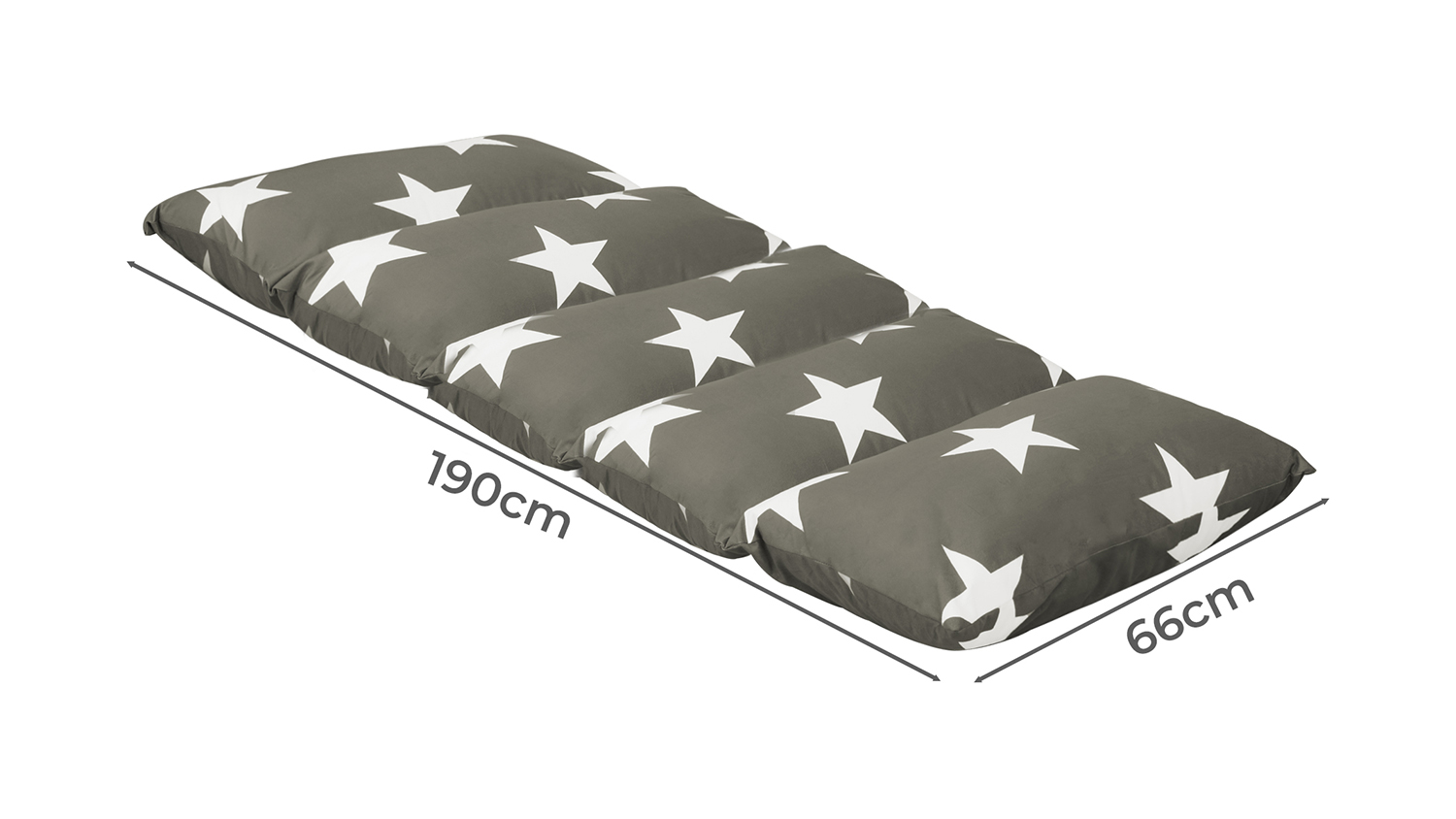 Relaxation meets convenience with the Dreamz Folding Washable Pillow Mattress. Perfect for lounging, reading, or watching TV, this unit boasts a 5-segment cushion design and soft breathable fabric for ultimate comfort. Plus, the smooth zipper makes cleaning a breeze.