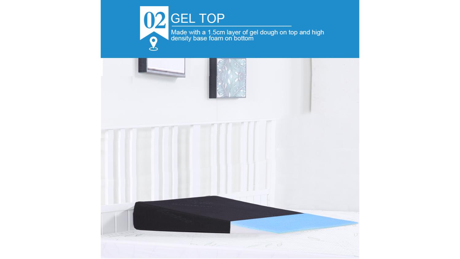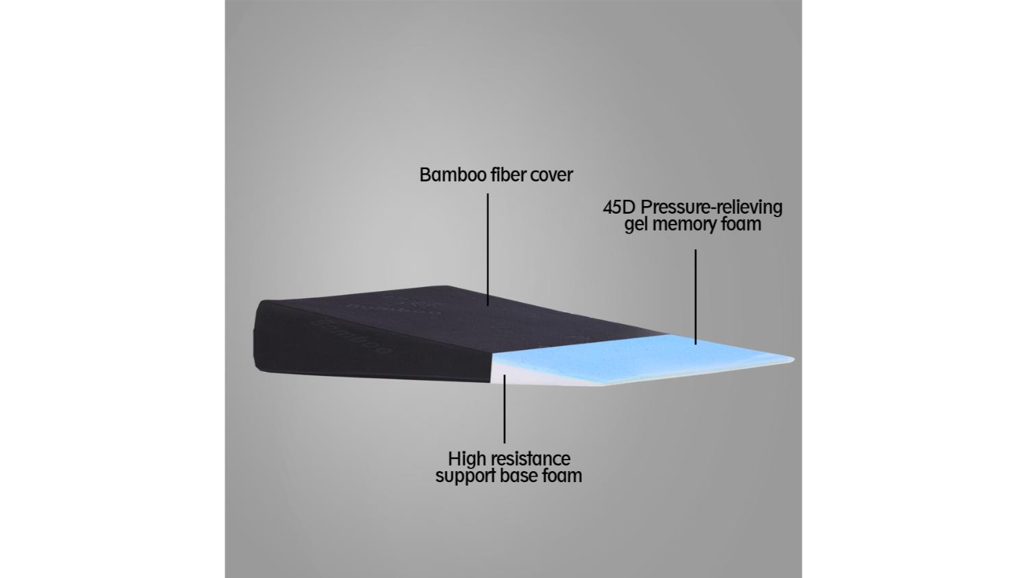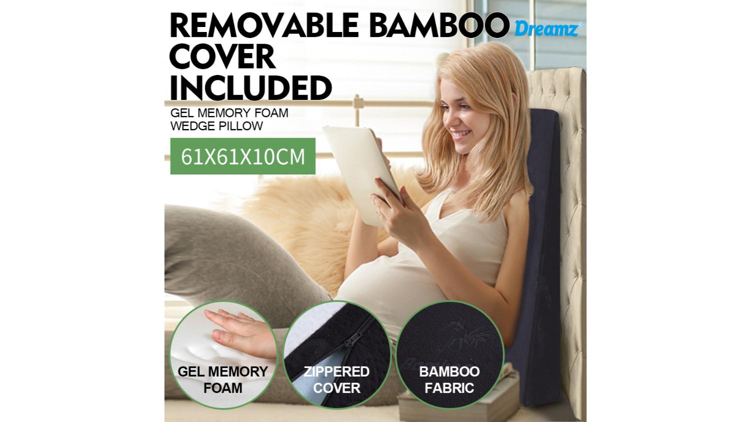 The Dreamz Memory Foam Wedge Pillow 61 x 61 x 10cm is your go-to solution for comfort and support. Designed with cooling gel technology, it keeps you cool while offering pressure relief for improved circulation. Whether you're sitting or lying down, it elevates your body comfortably and is perfect for various uses.