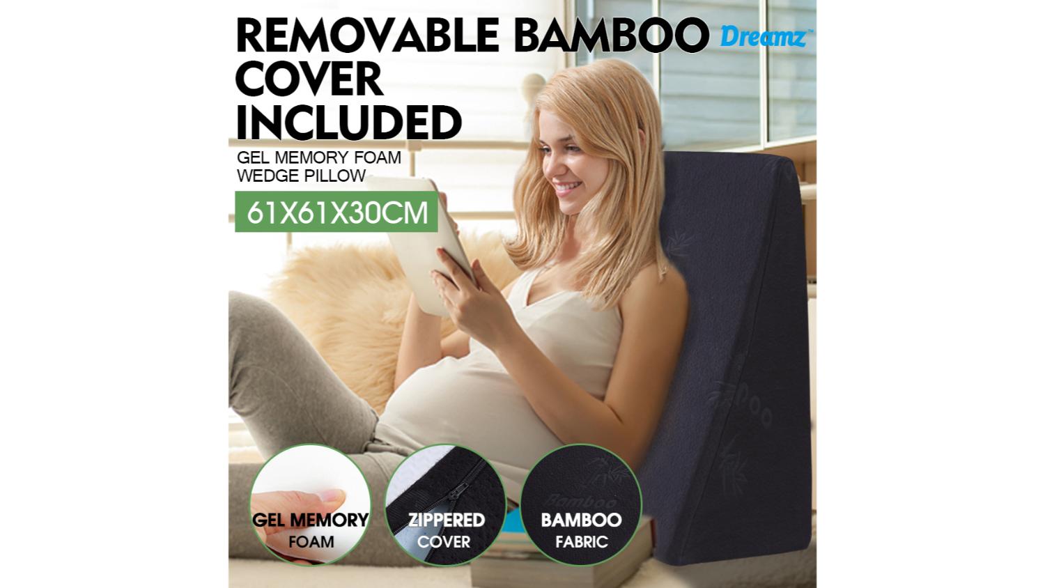 The Dreamz Memory Foam Wedge Pillow 61 x 61 x 30cm is your go-to solution for comfort and support. Designed with cooling gel technology, it keeps you cool while offering pressure relief for improved circulation. Whether you're sitting or lying down, it elevates your body comfortably and is perfect for various uses.