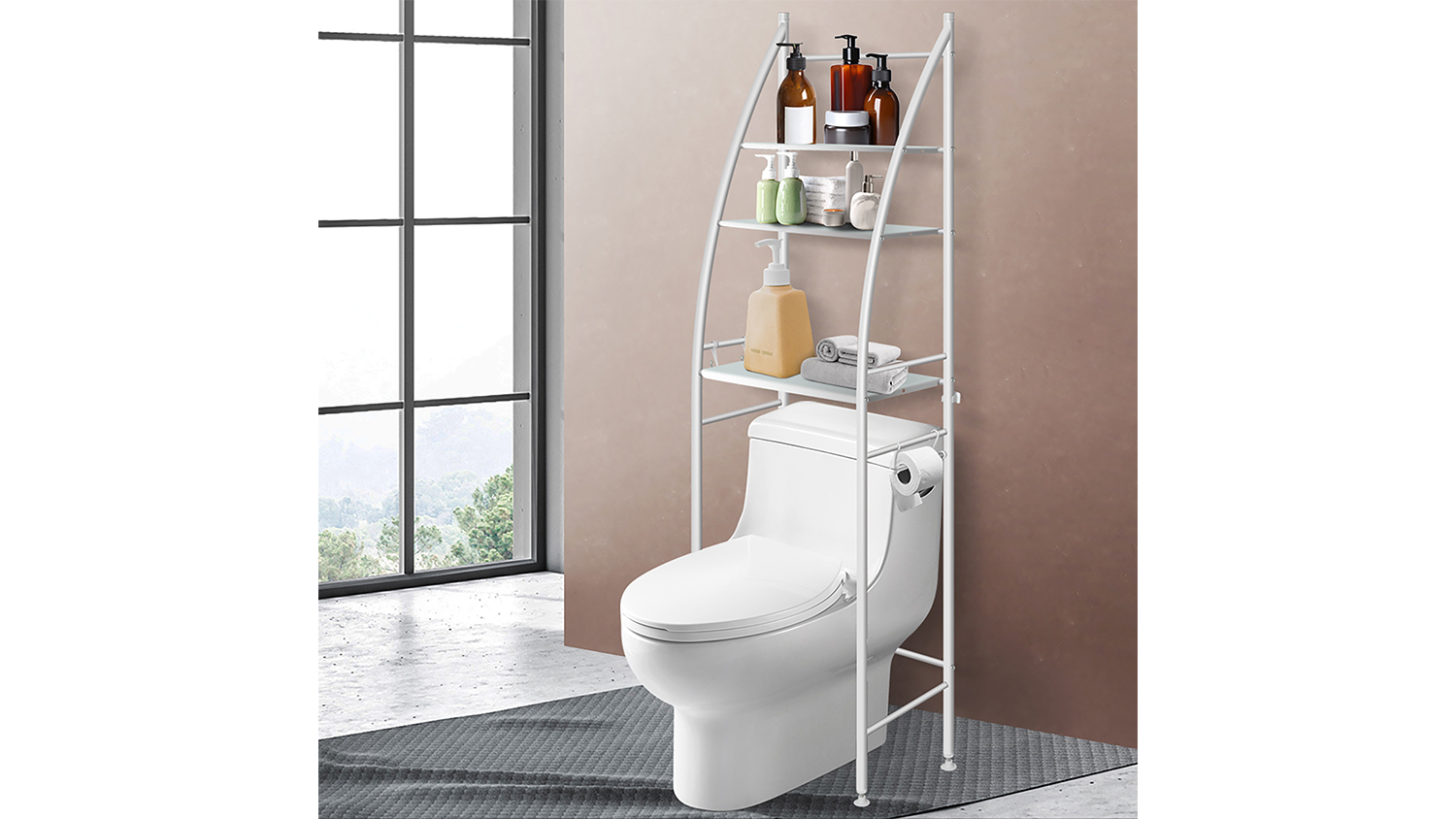 Organise your personal care essentials with the Dutxa 3-Tier Over Toilet Bathroom Storage Shelf with TP Holder. Crafted from durable materials, this unit features 1 paper roll holder and 3 hooks. It’s the perfect storage solution for any bathroom or toilet.