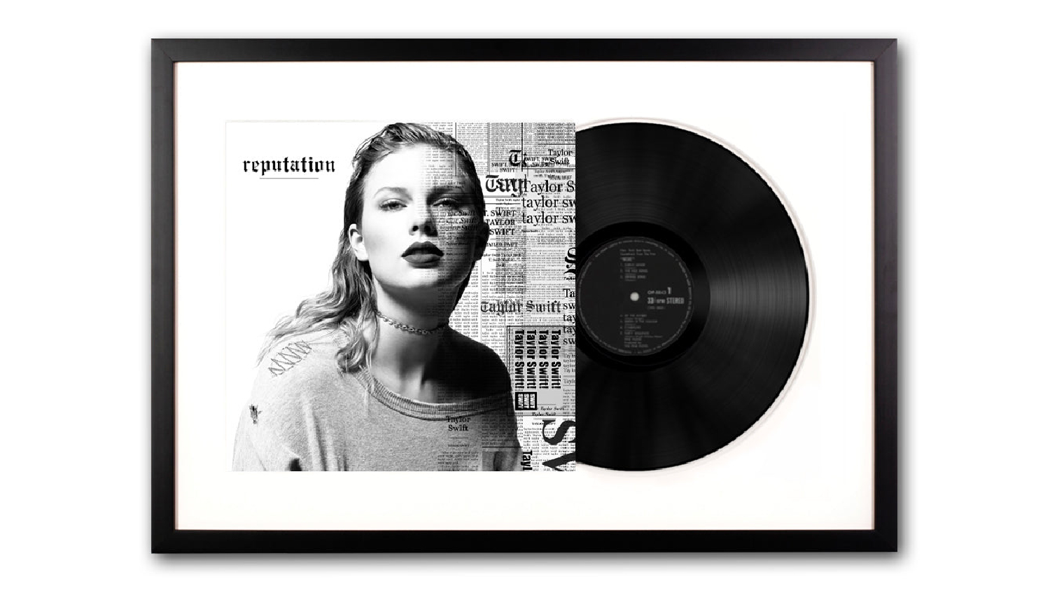 Sleek style meets music excellence with Taylor Swift's Reputation Framed Vinyl + Album Art. This bundle includes Taylor Swift's Reputation Framed Vinyl Album along with eye-catching cover artwork. It's time to elevate your vinyl collection and jam with your favourite iconic tracks!