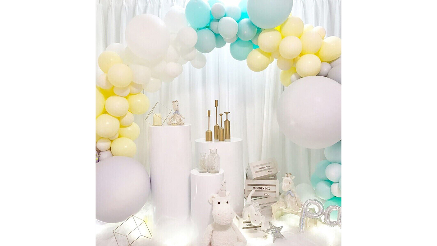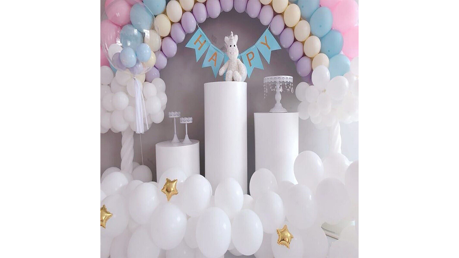 Create memorable moments with the HOD Round Event Decor Pedestal With Lights and Decorations. This versatile package includes three durable white iron pedestals of varying sizes, complemented by a 2m white organza, a cheerful balloon set, and a dazzling LED light strip to create a truly captivating ambience. It transforms any event into a dazzling spectacle!