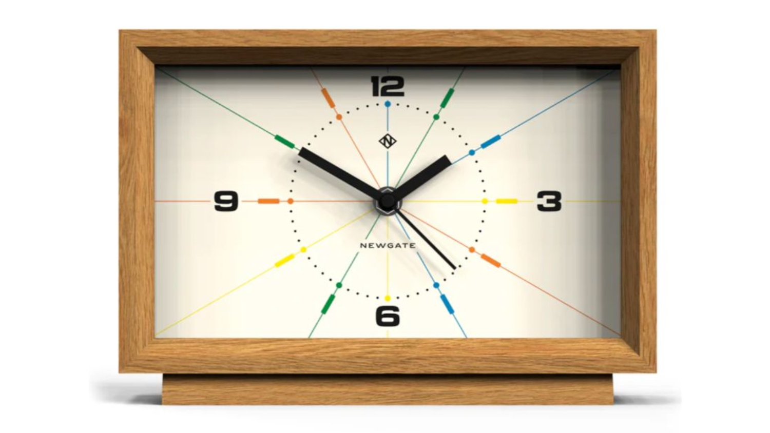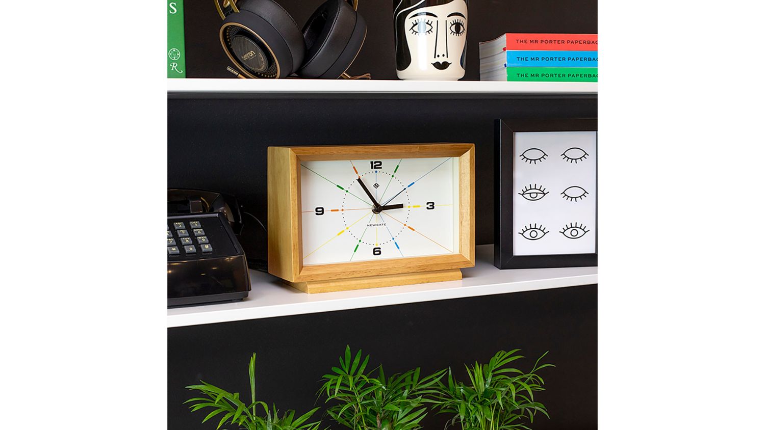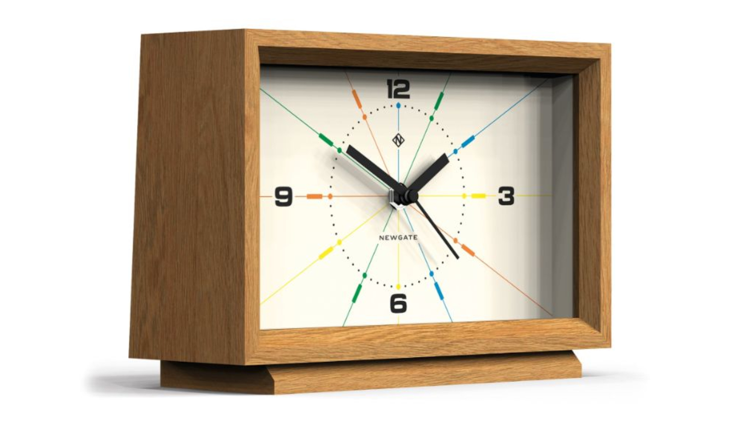 Unveil the elegance of time with the Newgate "Hollywood Hills" Mantel Clock and embrace a new era of design. Carved from solid light oak, this mantel clock is more than a timepiece; it's a work of art. The graphic modernist dial, adorned with screen-printed multicolour hour markers, captures the essence of modern aesthetics. Metal conductor's baton hands gracefully sweep across the dial, turning time into a visual symphony. Whether it graces your living room, shelf, or workspace, this clock adds a touch of sophistication that's bound to impress.