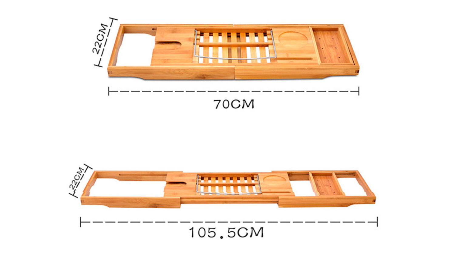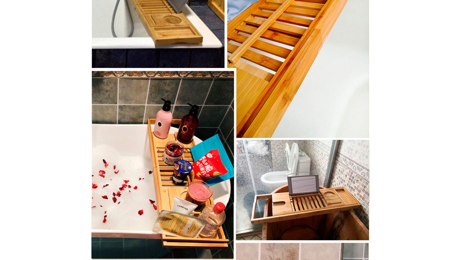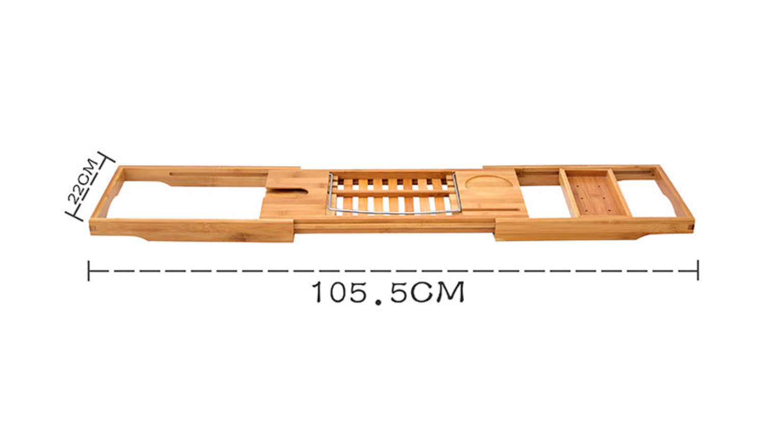 Say goodbye to clutter and hello to comfort. The Kmall Bamboo Bathtub Caddy Tray fits any tub and keeps your essentials like candles and wash products neatly organised. Enjoy a cup of tea or wine with the built-in holder, and support your book or tablet with adjustable bamboo pegs. Bath time just got better.
