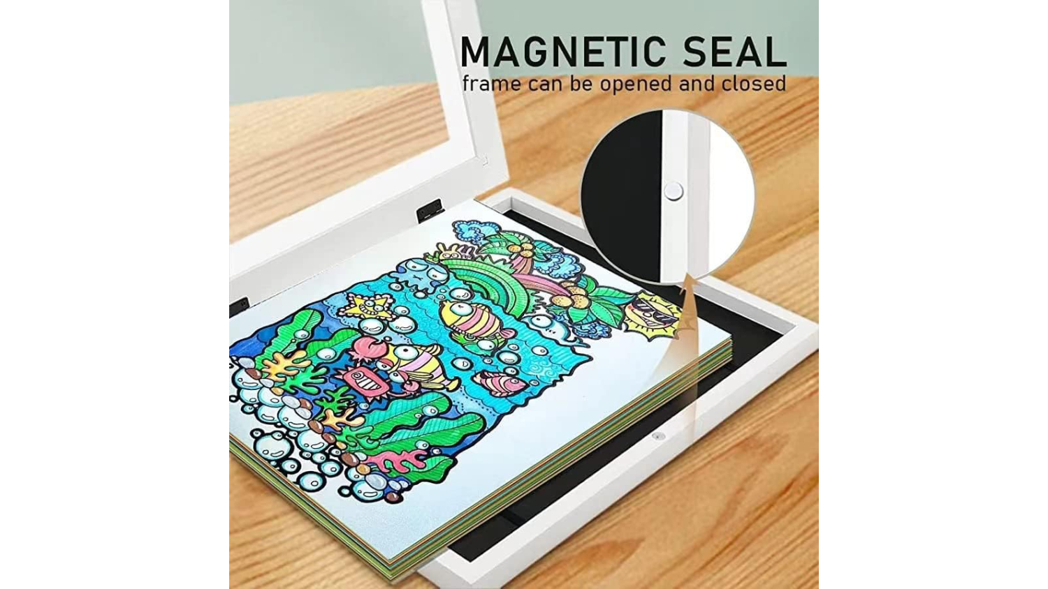 Make a lovely gallery out of your little one's masterpiece, thanks to the Kmall Children's Artwork Frame. This stylish and easy-to-use frame turns every drawing into a cherished display. It features an easy-to-use magnetic clasp and a 180-degree open metal hinge for quick, direct-from-the-wall picture replacement that is perfect for A3 drawings. With the capacity to store up to 150 paintings and a double-fixed elastic band to keep art stable, it’s a fantastic gift and an efficient way to celebrate creativity.