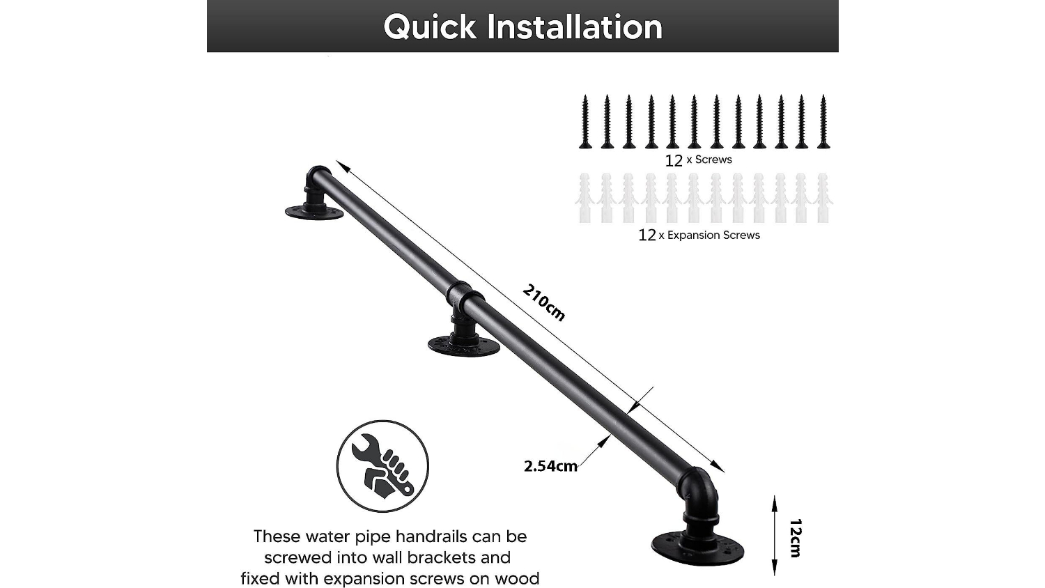 Add a touch of style to your staircase with Kmall's DIY Industrial Pipe Design Stairway Handrail 210cm! Made from strong carbon steel and finished in a sophisticated black matte finish, this 210 cm L x 12 cm H handrail is as stylish as it is sturdy. The unique industrial design effortlessly complements any interior, making it a perfect addition to your home.