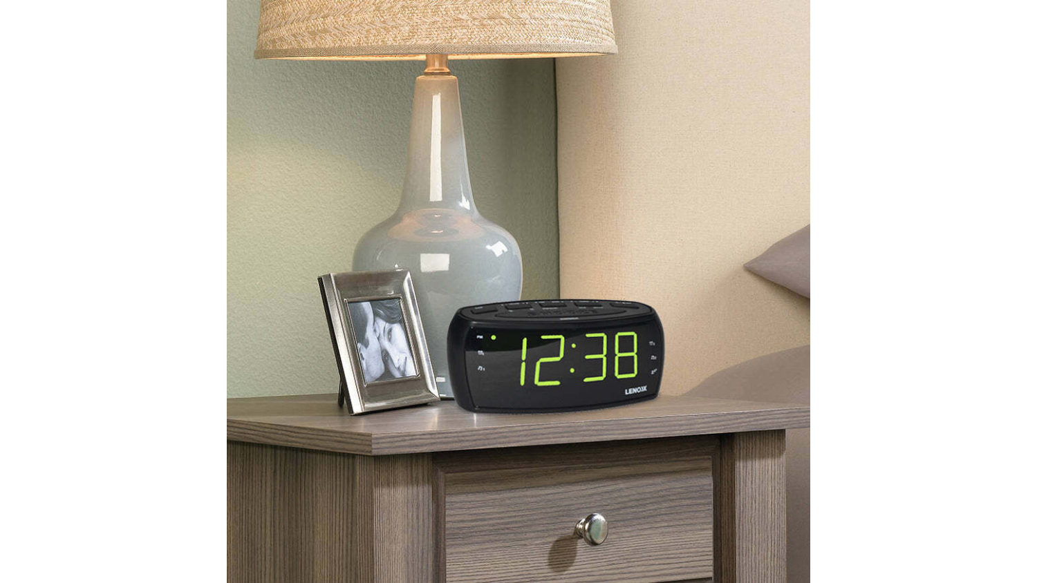 Rise and shine with the Lenoxx AM/FM Radio LED Large Number Alarm Clock! Featuring large numbers, it provides clear visibility, so you'll never struggle to read the time again. The built-in AM/FM radio also lets you tune in to your preferred stations. With its sleek design and user-friendly interface, this alarm clock is a must-have for anyone seeking a seamless morning routine.