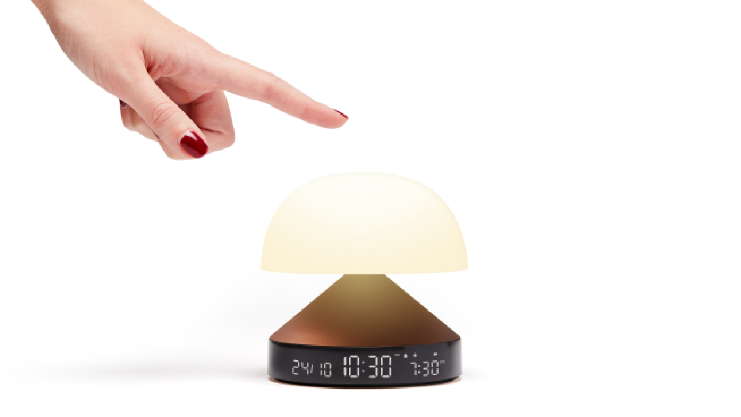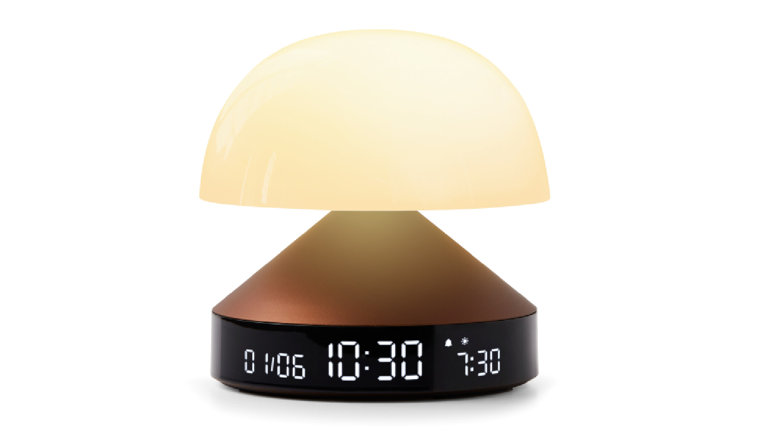 Brighten up your day and night with the Lexon Mina Sunrise LCD Alarm Clock and Lamp. This 3-in-1 marvel includes a sunrise and sunset simulator, alarm clock, and multicoloured LED lighting. Wake up gently with progressive light and natural sounds, or drift to sleep with the relaxing sunset mode. Its sleek design and aluminium base make it a nightstand must-have.