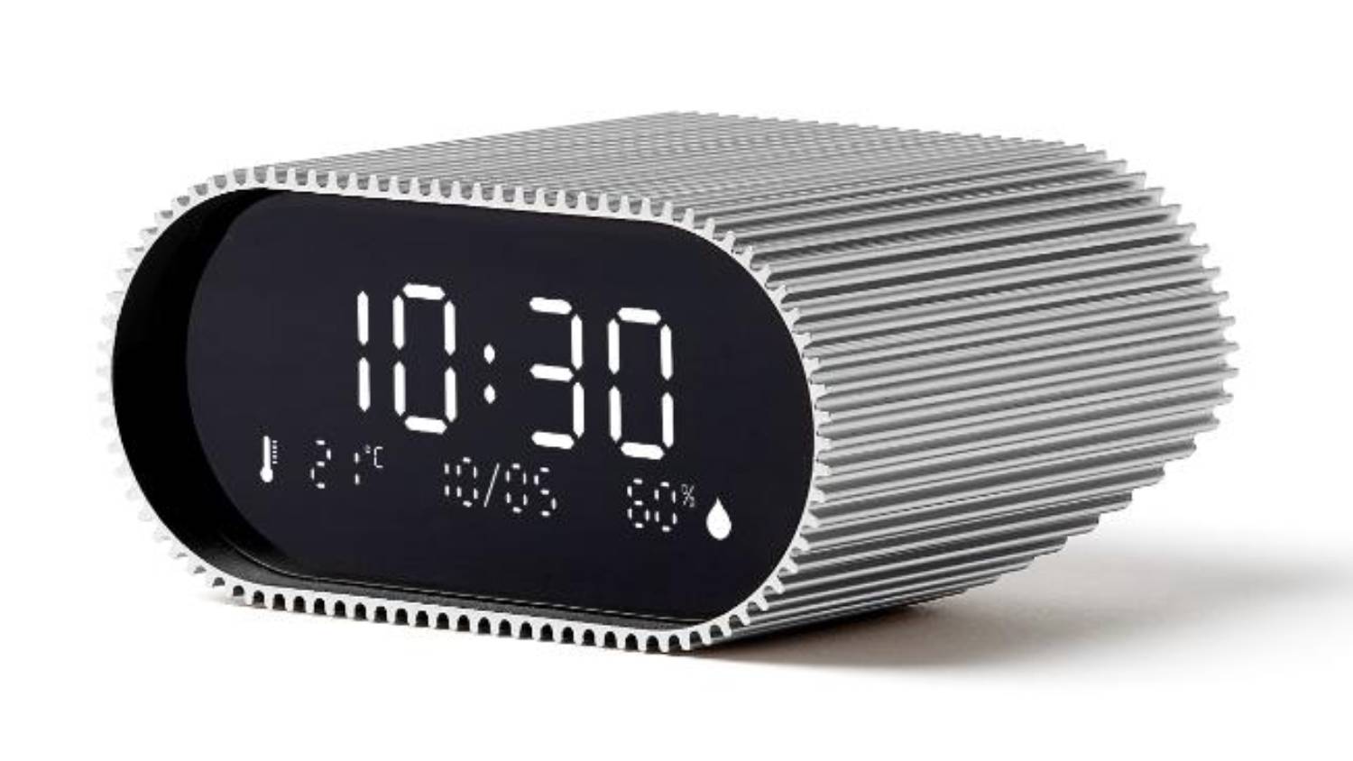 Simplify your mornings with the Lexon Ray Alarm Clock! This device is equipped with a clear VA LCD display, so you can easily check the time, temperature, and humidity at a glance. It also has an intuitive tilt-to-disable feature and a range of soothing wake-up sounds to ensure a gentle start to your day. Plus, its stylish fabric body and timber legs also complement any bedroom decor.