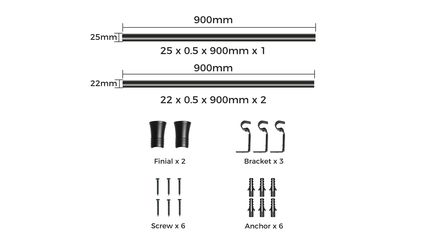 Marlow DIY Curtain Rod Mounting Kit - Black