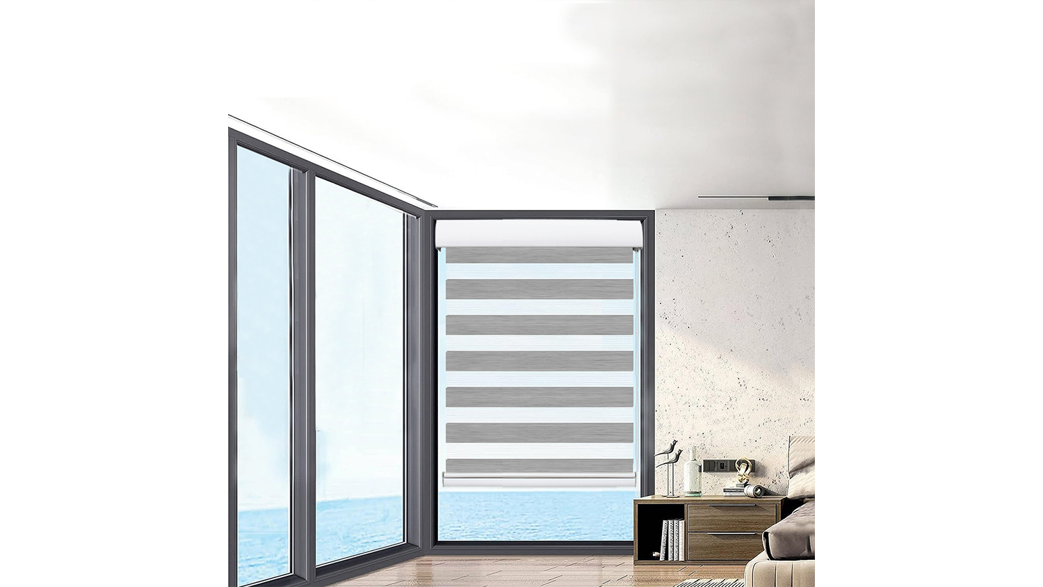Control the light and privacy in your home with the Marlow DIY Windowsill Mountable Sheer Roller Blind 2.1m x 60cm. This unique zebra roller blinds unit is built with durable, UV-resistant, double-layer fabric, providing excellent insulation and customisable light-blocking.