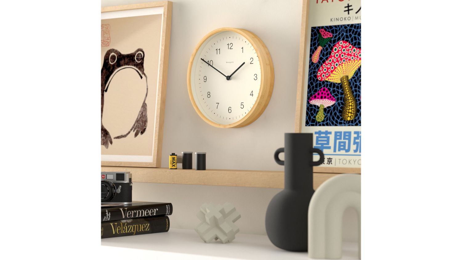 Elevate your space with the natural allure of the Newgate "Bali" Wall Clock. Embodying modern sophistication and Scandinavian-inspired charm, this clock is more than a timepiece. Encased in bamboo, it's a tribute to nature's elegance, seamlessly blending functionality with artistry. It also boasts metal hands that move gracefully and a glass lens.