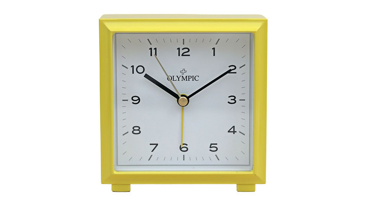 Simplify your mornings with this Olympic Square Metal Analog Alarm Clock. This classic timepiece features a robust metal case with a precision quartz movement for accurate timekeeping. It also has an easy-to-read dial and classic alarm function to ensure you're always on time.