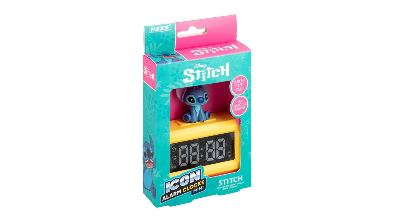 Start your day the mischievous way with the Paladone Mini Novelty Alarm Clock featuring Stitch. This officially licensed Stitch Mini Icon Alarm Clock stands a compact 8.8 cm tall, making it the perfect companion for your morning routine. Simply tap the figure to snooze the alarm. Powered by batteries, this adorable mini-icon is a must-have collectible.