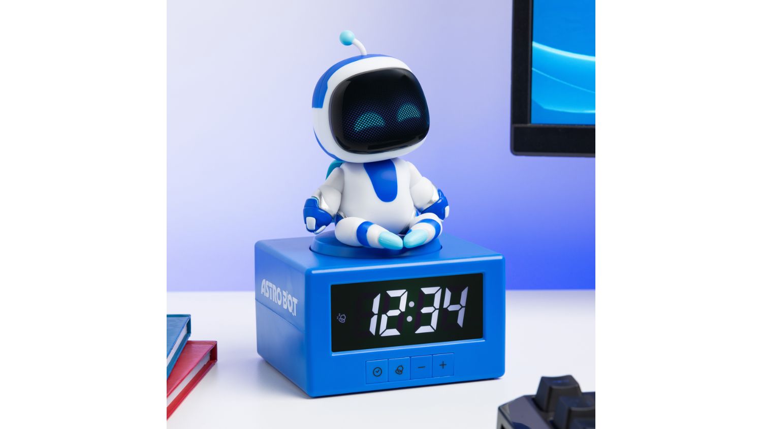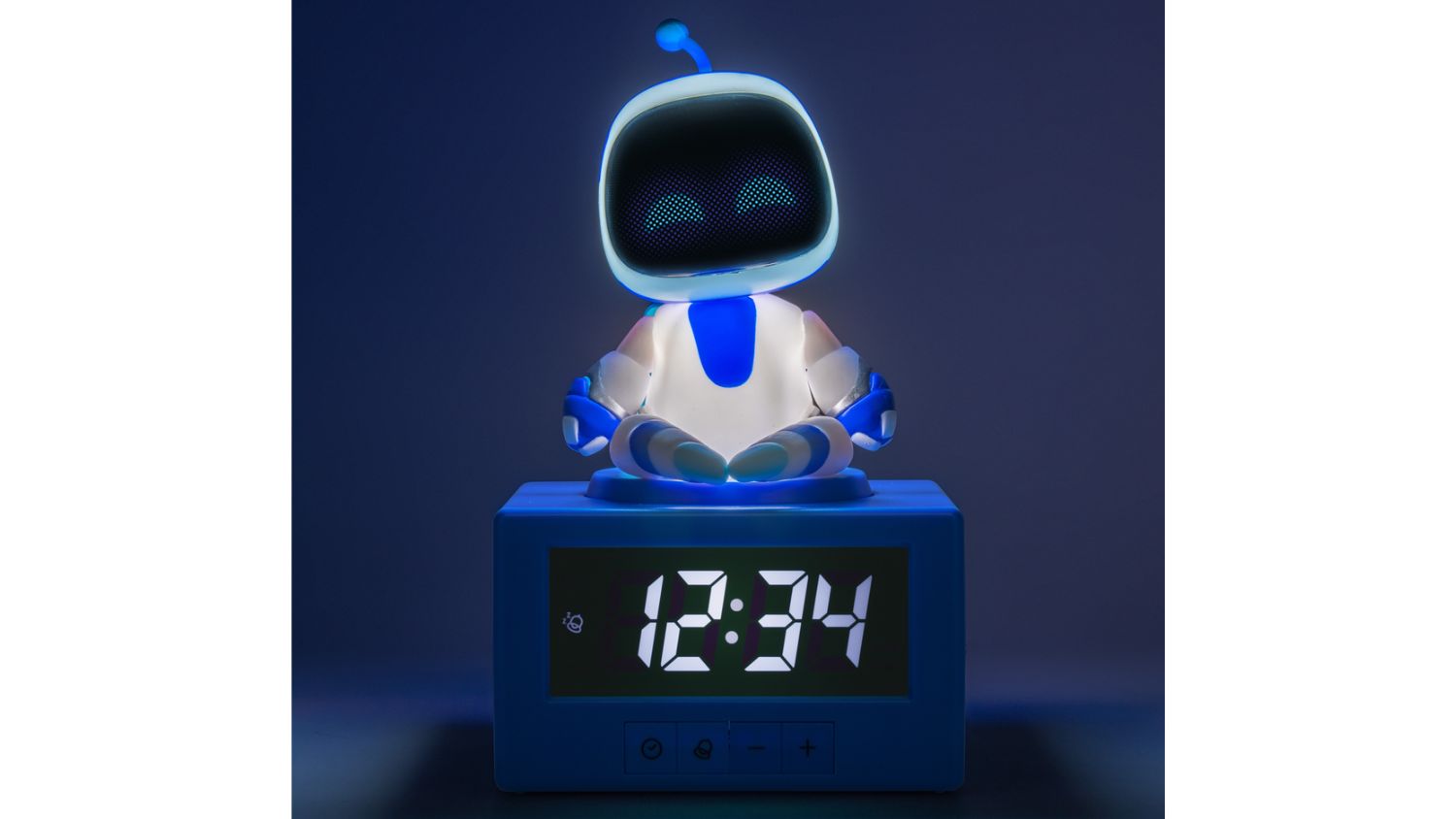 Level up your mornings with the Paladone Novelty Alarm Clock featuring Astro Bot. Standing 17 cm tall, the digital clock features the Astro Bot figurine on top. It offers easy functionality, just tap his head to snooze or press down to turn on the gentle night light function. Powered wirelessly by batteries, this fun collectible is a great addition to any Astro Bot fan’s bedroom.