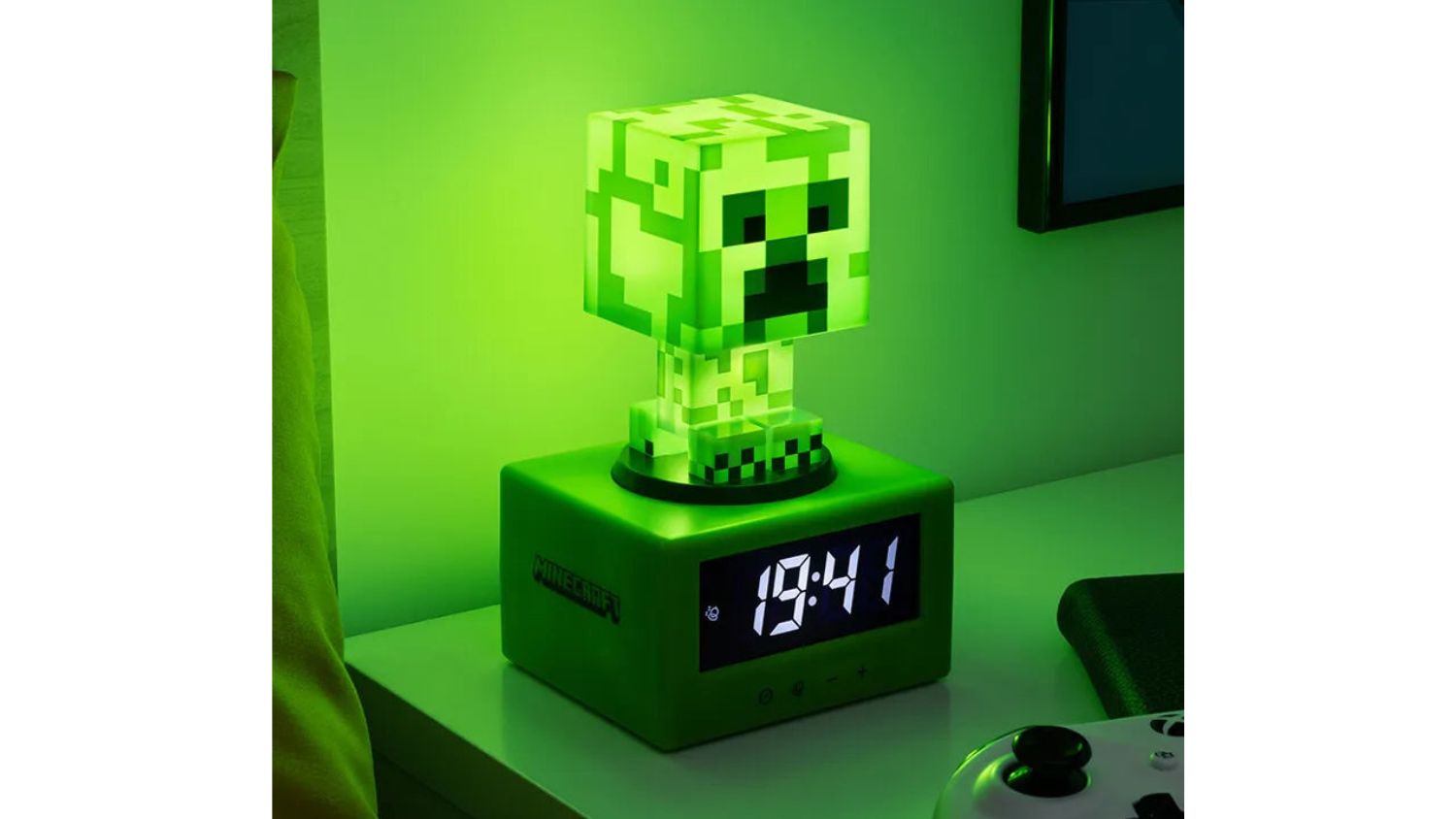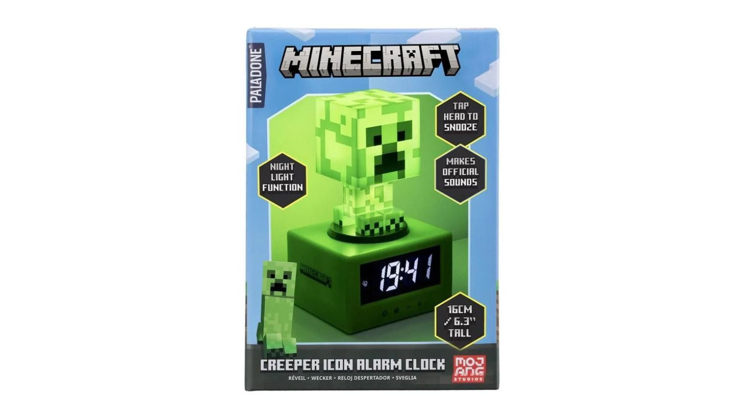 Make mornings a little more epic with the Paladone Novelty Alarm Clock featuring Minecraft Creeper. This digital clock stands 16 cm tall and features the iconic green Creeper figurine. Press the Creeper down to activate the night light or tap its head to catch a few extra minutes with the snooze feature. Powered by batteries, this is a great addition and gift for any Minecraft fan or gamer.